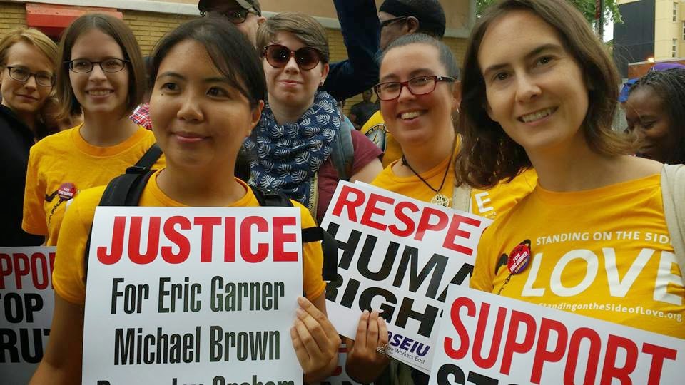 Kelly was interviewed on camera about why a white person would march for black lives. In part she said that, as a school social worker, these are her children who are being stopped-and-frisked, profiled and harmed. She acquitted herself with exceeding grace, and made the cut for the evening news.