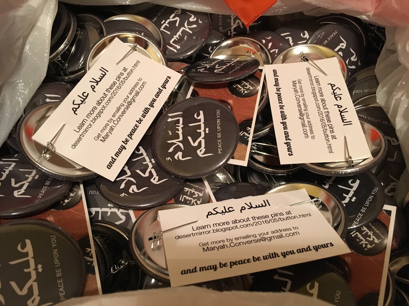 There is renewed interest in Peace Be With you buttons due to the recent uptick in violence against Muslims (e.g. here, here, here and this one that was actually probably not a hate crime) and the recent bombs in New York and New Jersey. I have more informational cards and literally hundreds of buttons to give away, already paid for by the Women’s Alliance of the Unitarian Church of All Souls, NYC.