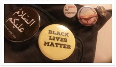 This morning he said, “Maybe today … don’t wear that pin with the Arabic on it.”