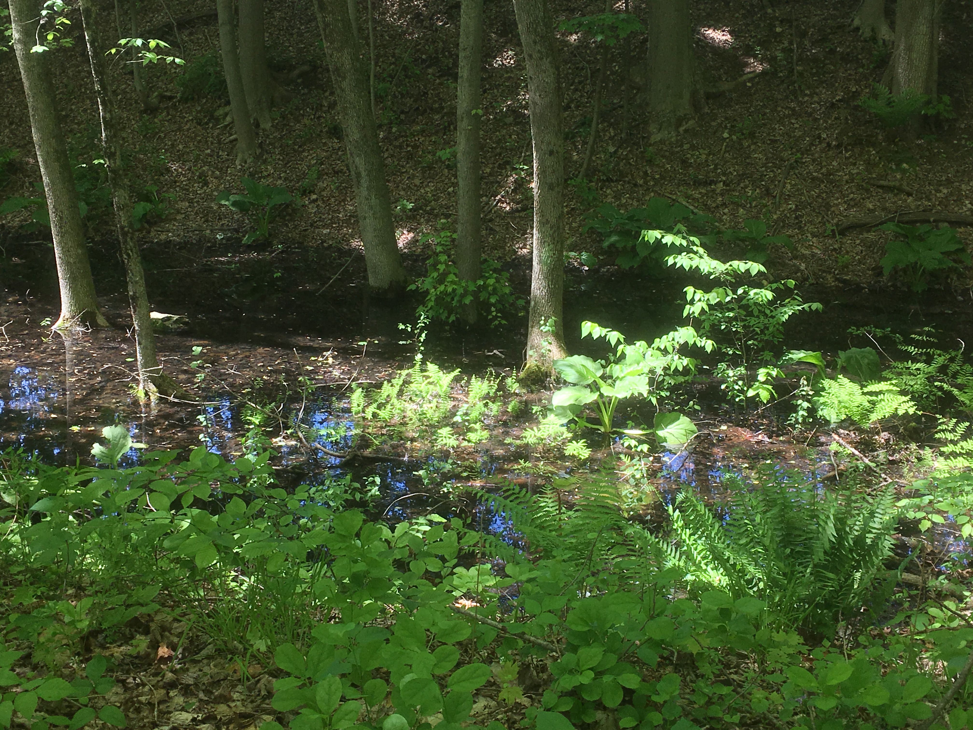 We got a mite confused looking for parking, and the trail wasn’t obvious where we picked it up (admittedly, somewhat in the middle) on the verge of historic Waterloo Village, but once we’d found it, the path was wide and clear, the markings on the trees quite obvious.