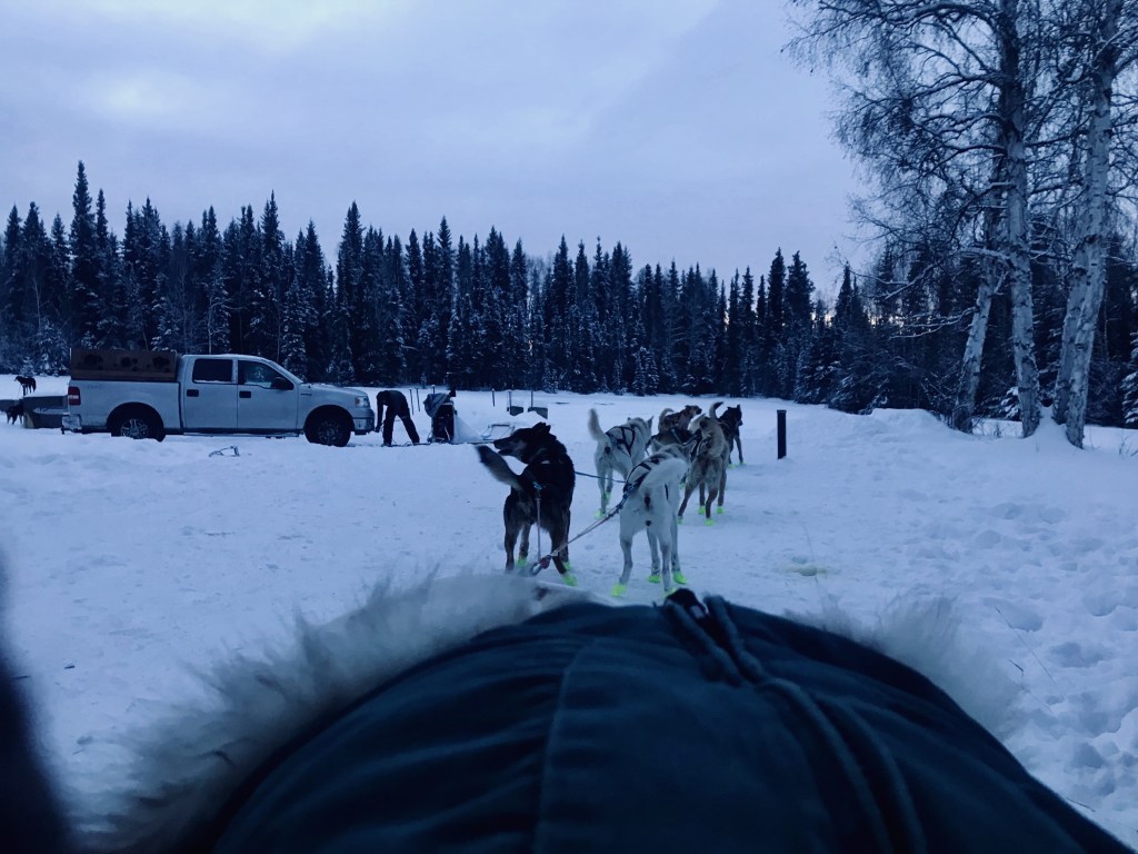 He started asking our musher if he was a racer, and if he’d done the long distance races. “I’ve done the Iditarod twice, the Yukon Quest five times.” The Yukon Quest is also a 1,000-mile race, run a month earlier when it’s colder, darker and arguably harder.