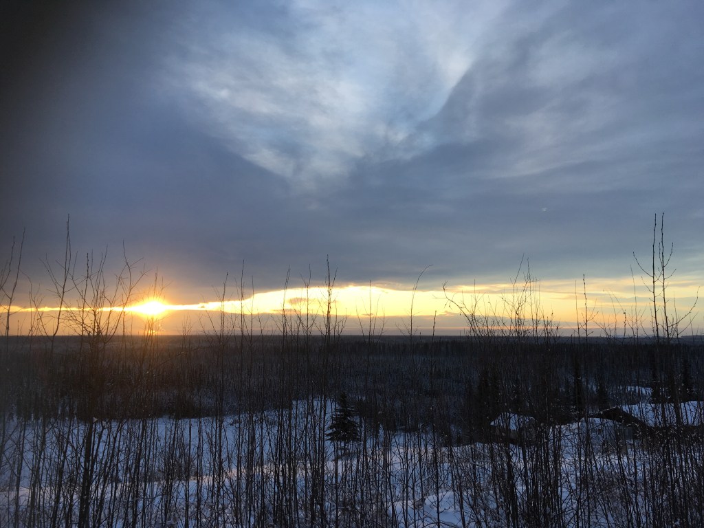 The snow on the black spruce and birch trees was luminescent in the dark, reflecting every photon of light from headlights and streetlights so that you know it’s night, but it hardly feels dark. In some ways, it reminded me of lying outside in the Wadi Rum desert with the starlight so bright I couldn’t sleep.