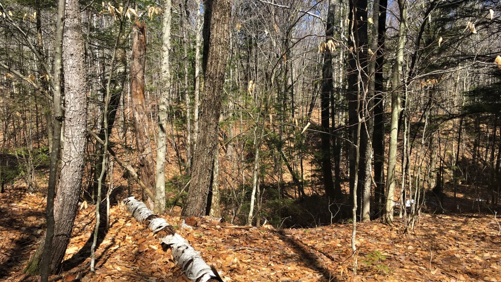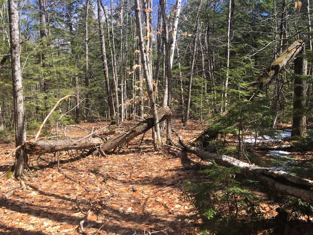 What I always refer to as Grandpa’s Back Forty isn’t actually his anymore; it belongs to the Loon Echo Land Trust. Nevertheless, we continue to have proprietary feelings about it. For today’s adventure, my hiking buddy and I decided on the remote and inaccessible Back Forty, without perhaps fully considering what the implications of all those words really were….
