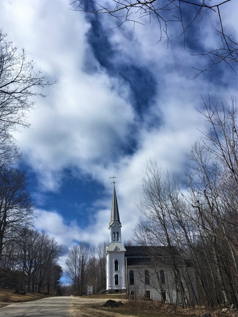This road brought us up to Fosterville Road, leaving one more great treat for us on our walk home: the South Bridgton Congregational Church where my grandparents were members for many years, and my grandfather was heavily involved with the replacement of that classic New England steeple.
