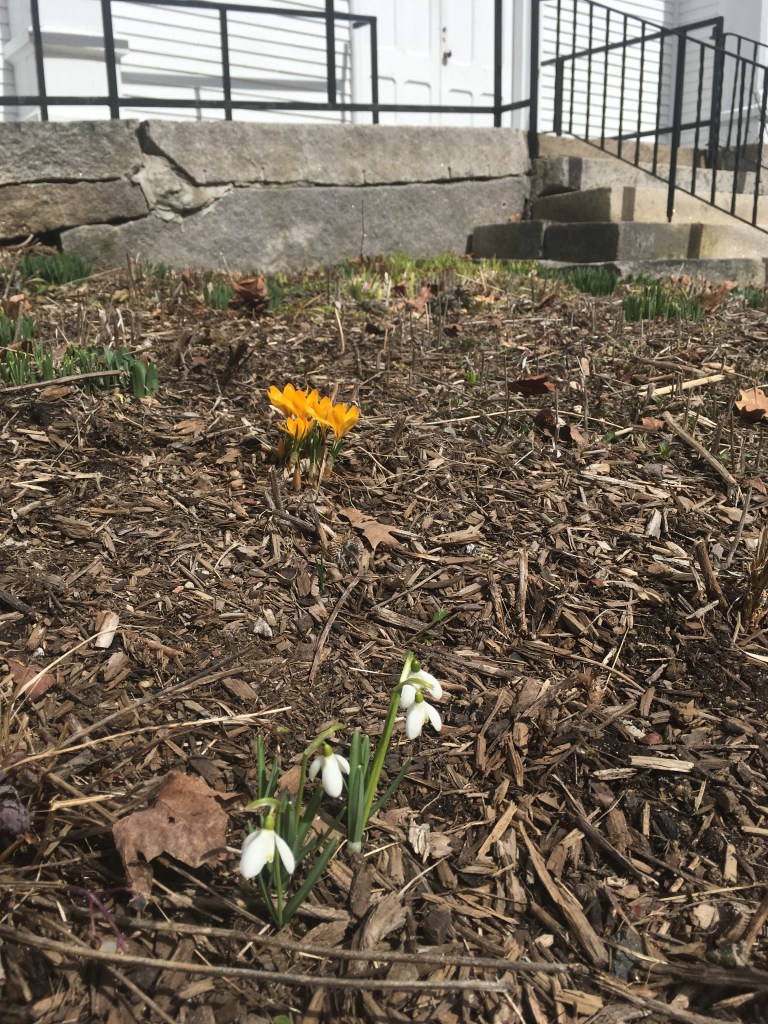 Beyond the dewdrops and crocus peeking out of the garden, you may recognize the distinctive marks of the feather and plug method of granite quarrying … perhaps even from the old Peabody/Fitch quarry…? One wonders.