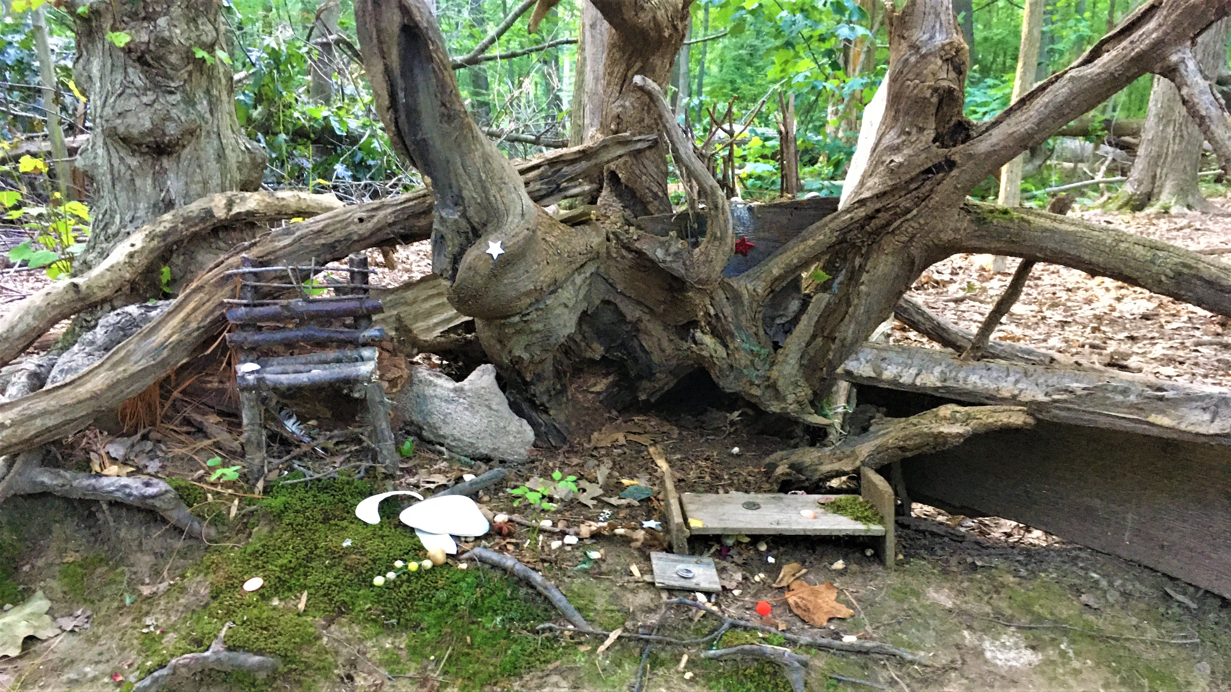 This half-mile trail has been inhabited by fairies! As you walk along the white-blazed path, look carefully and you will find where they have chosen to live. Fairies build their homes in tree hollows and roots, or from materials found in their habitat, such as branches, stones and dried fungi. Fairy houses are delicate, so be very gentle and try not to disturb any fairies that may be inside.