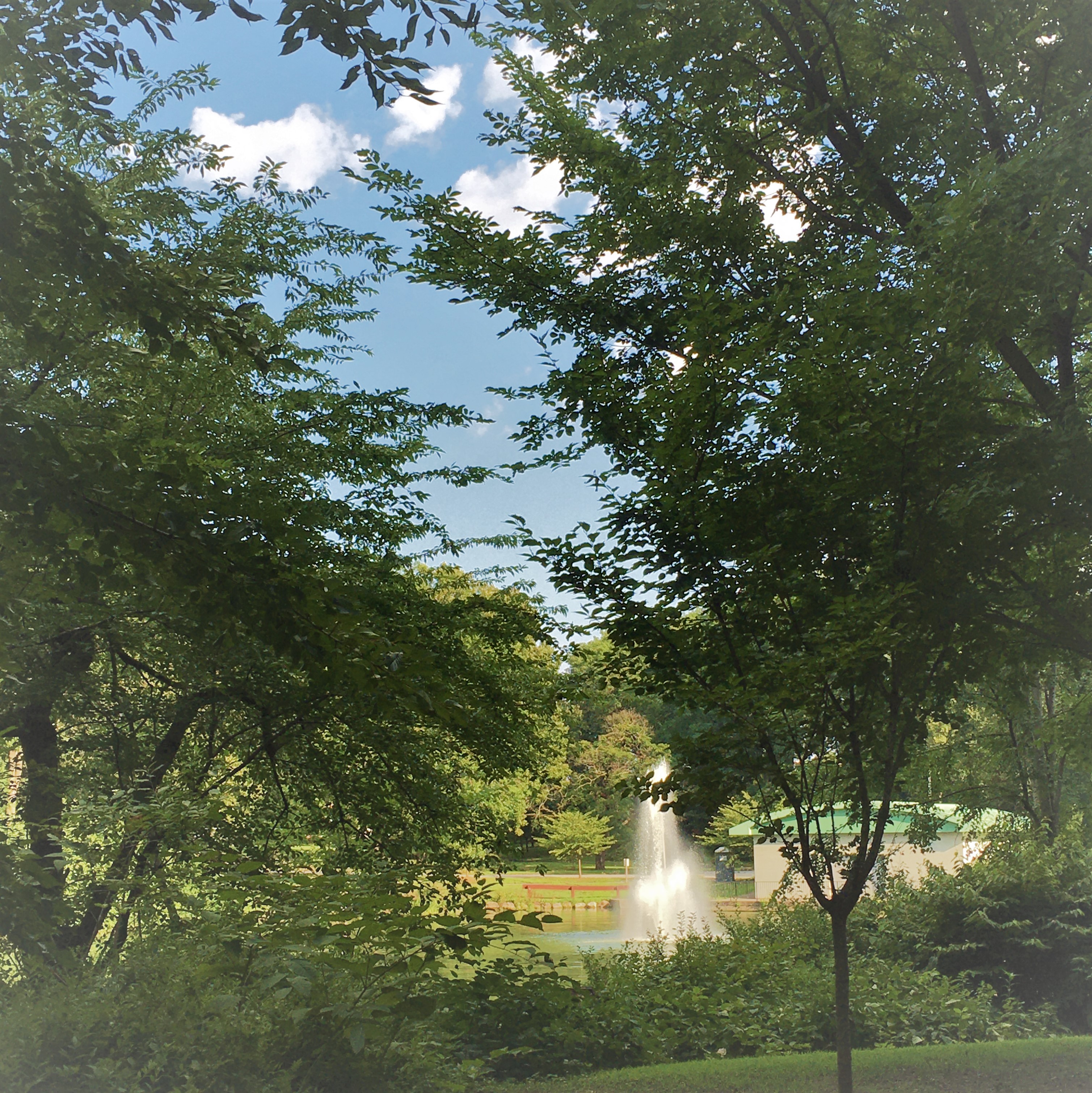 Driving into the park, lush and green with fountains streaming, we found a winding road with a wide continuous shoulder for parking, and families scattered across the grass. But we also found big fat drops of rain beginning to strike our windshield, and a look at the radar on our weather apps showed thunderstorms raging for hours. No park for us, and no drive-in theater, either.