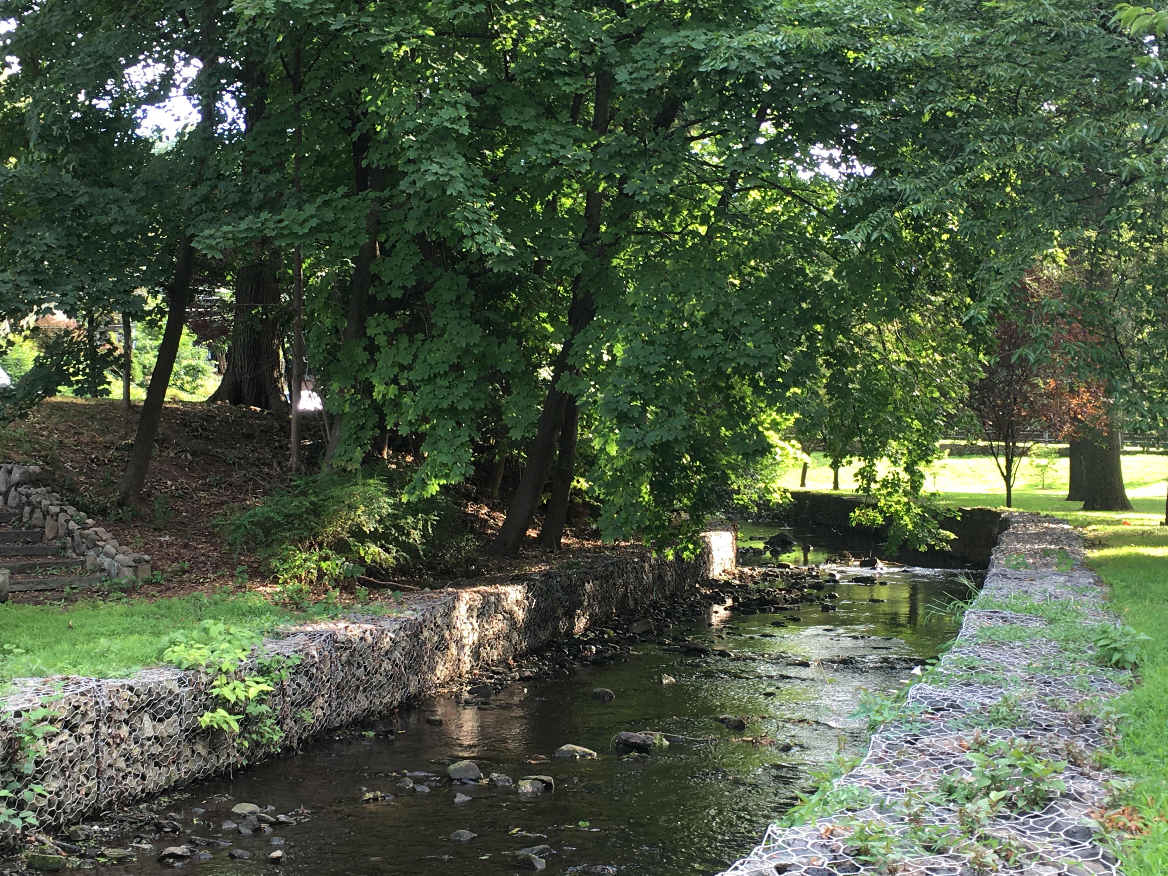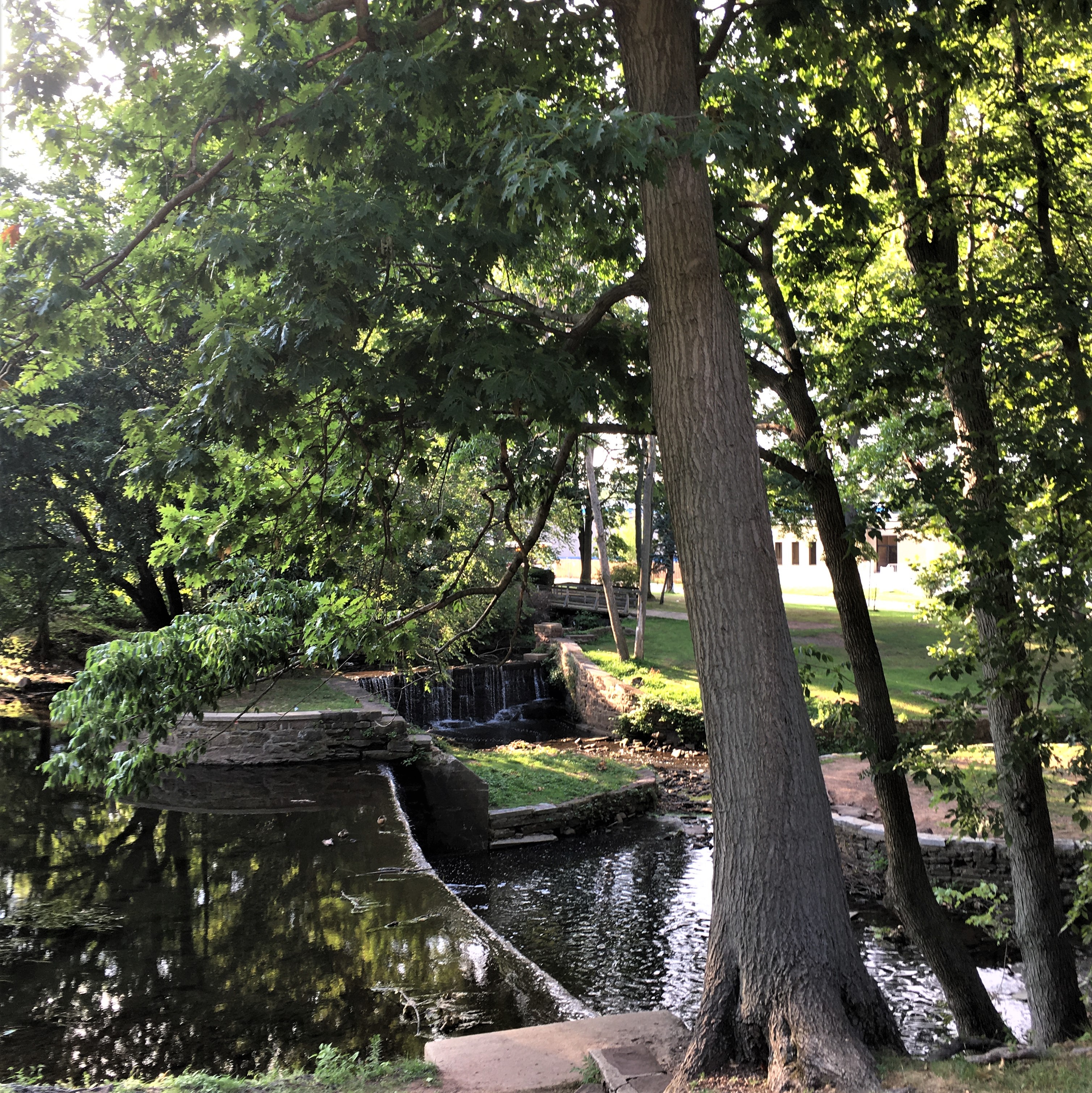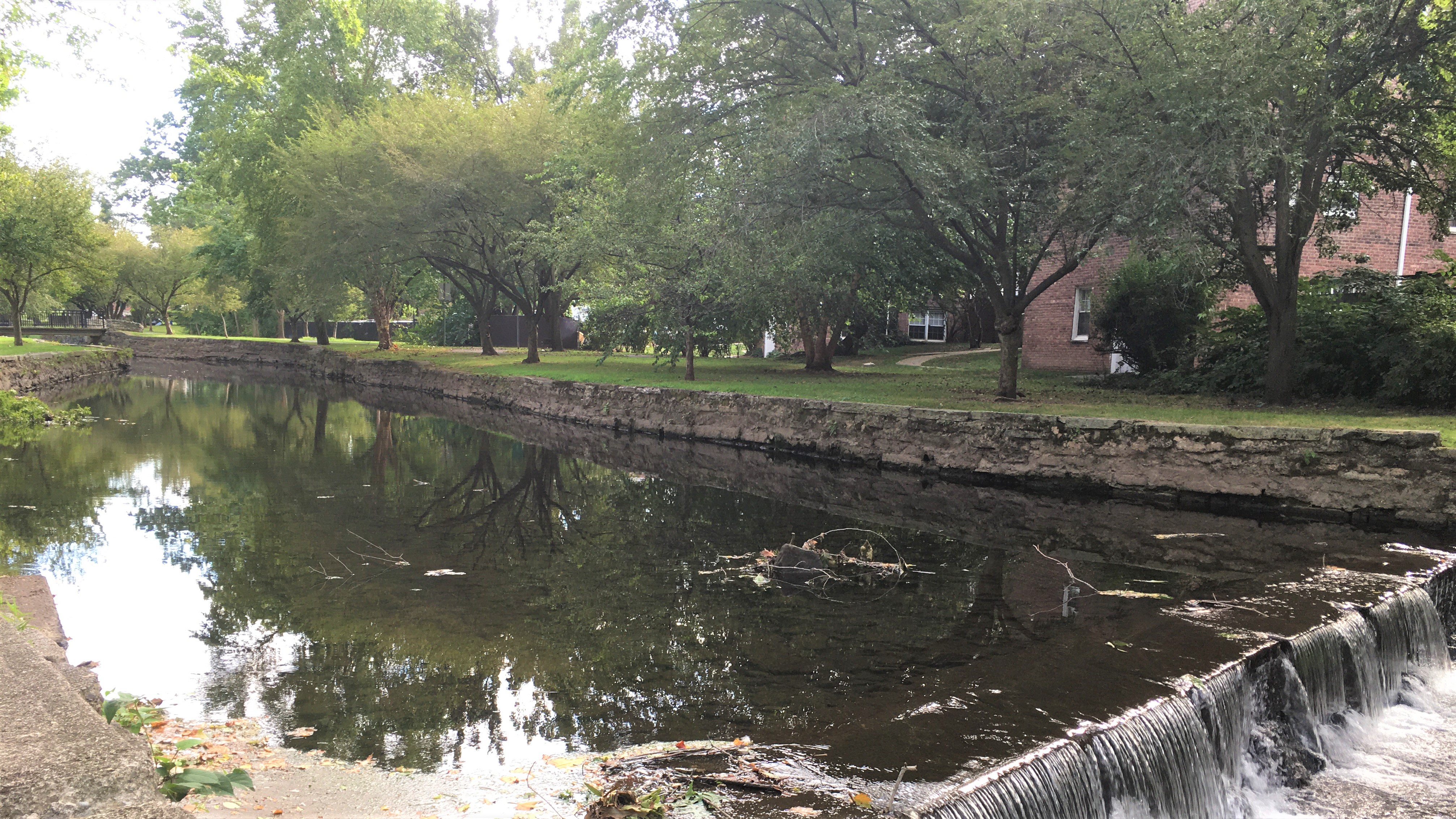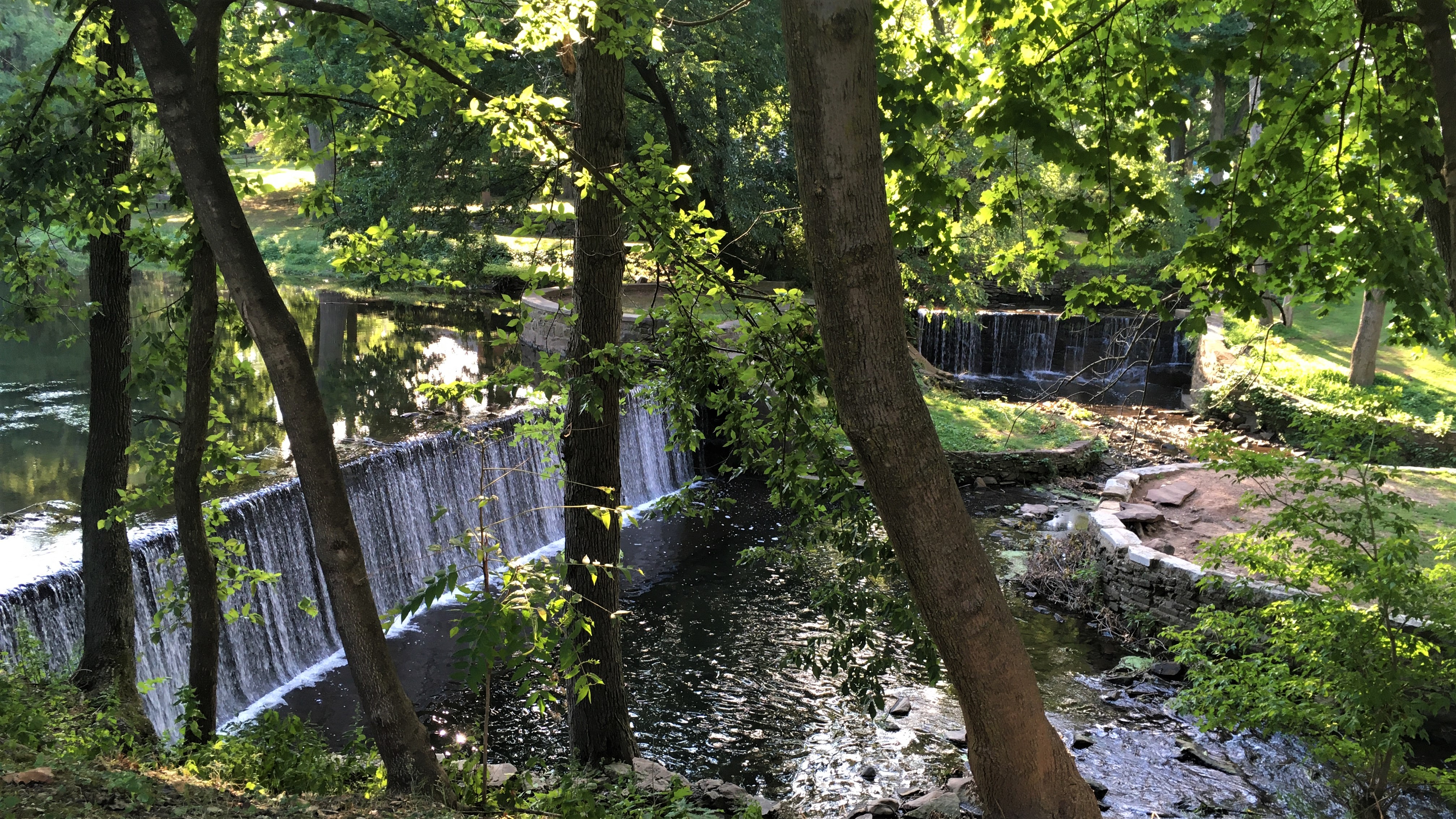 At the top of this third park was an unusual sort of dam system. And across the river in the trees was the colonial-era estate turned living museum (presently closed, of course) of Kingsland Manor.