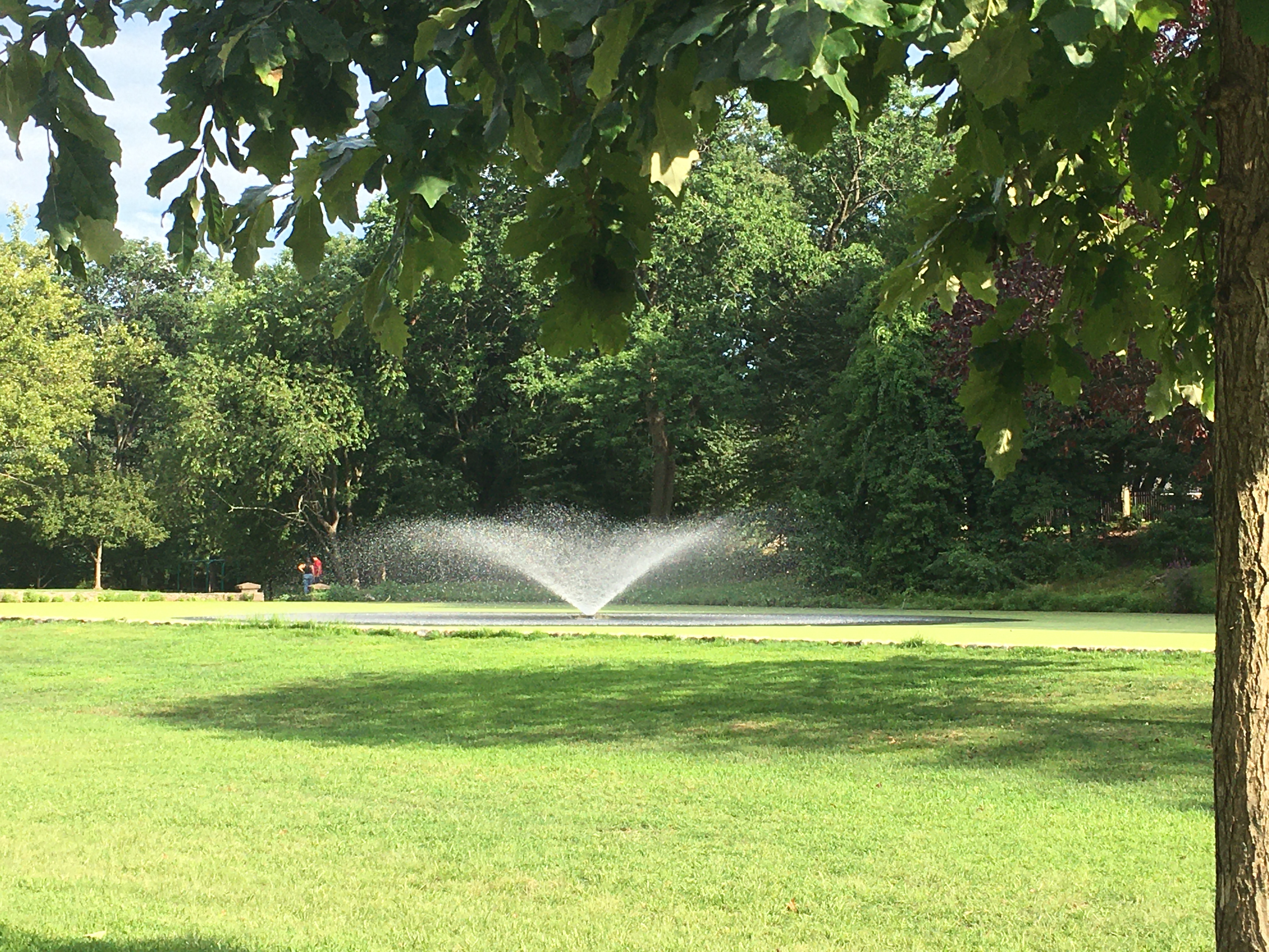 The park was lovely, with all these big suburban houses whose backyard fences and culdesacs opened up onto the shared green. People were out walking their dogs, taking strollers, accompanying kids on bikes, or just out for a stroll with a friend. It was a nice little suburban community vibe.