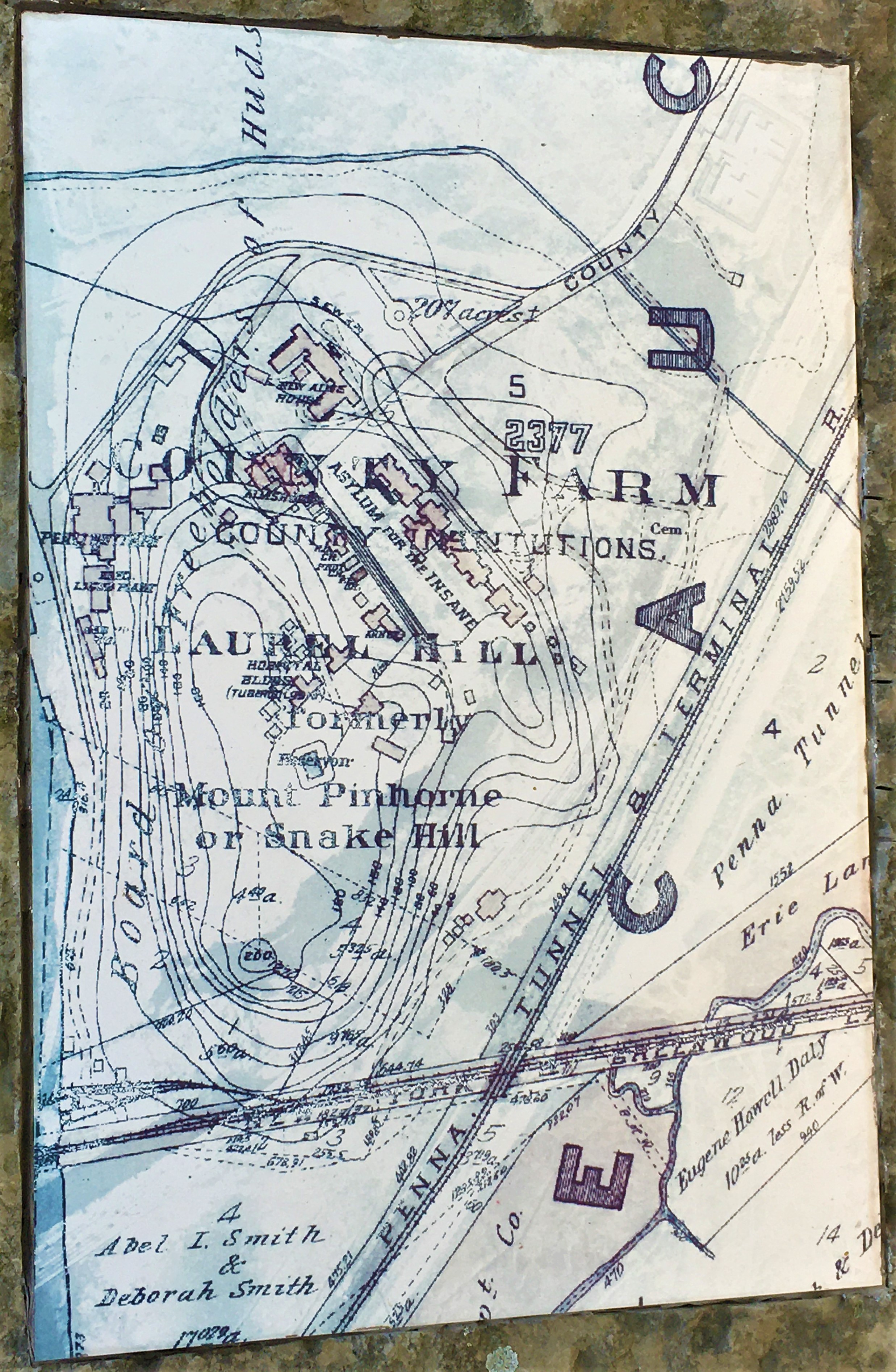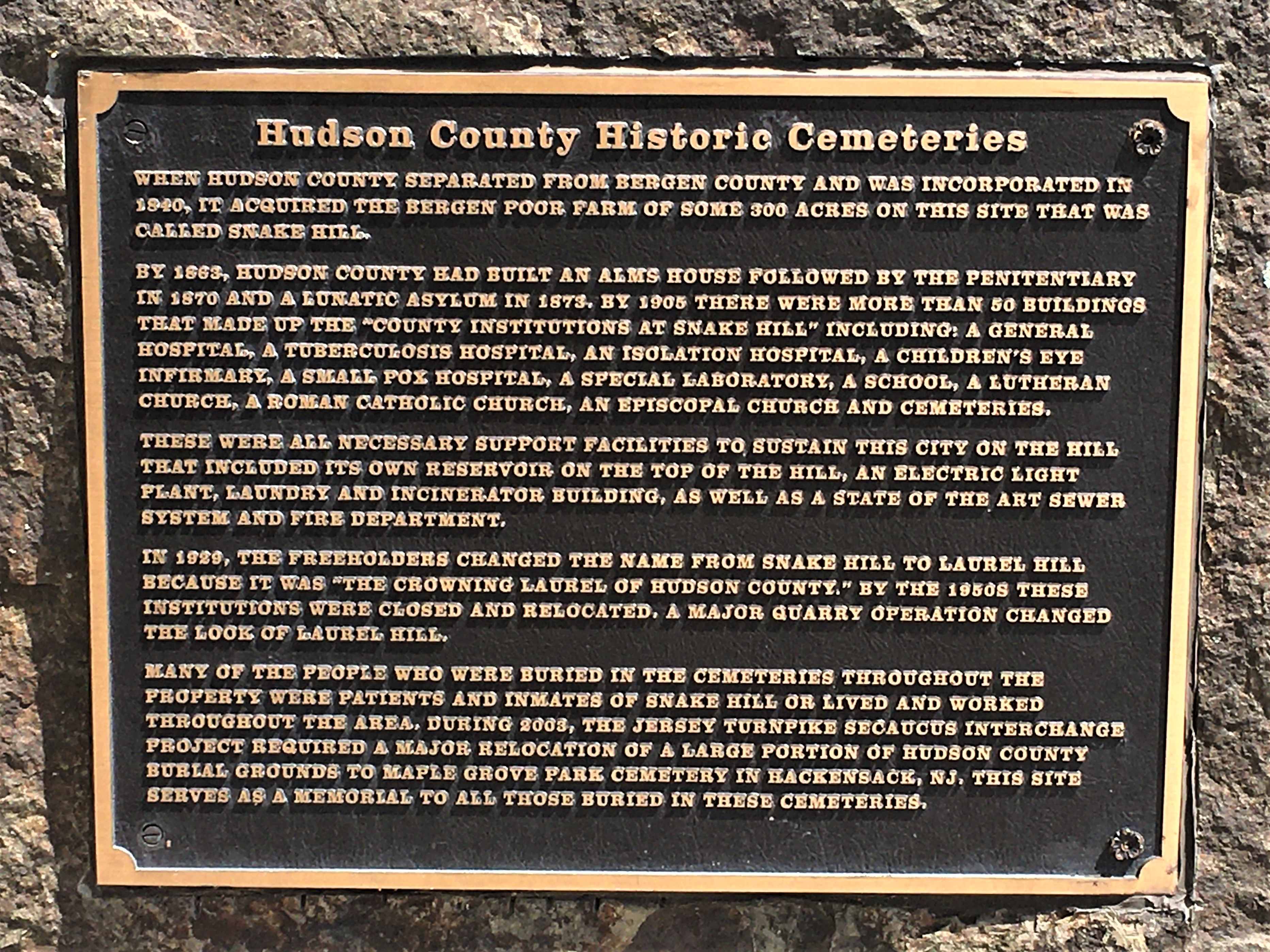 Since we were there, and it was barely past noon and nice weather, my partner and I decided to take a walk along the waterfront in Laurel Hill Park. Turns out it’s got quite a history. What’s a nice flat park now was once Snake Hill, a place of penitentiaries, sanatoria — according to Secaucus town historian Dan McDonough, “Anybody could sign somebody in. However, you would need three doctors to sign you out” — and the quarry that eventually brought the whole mountain down.