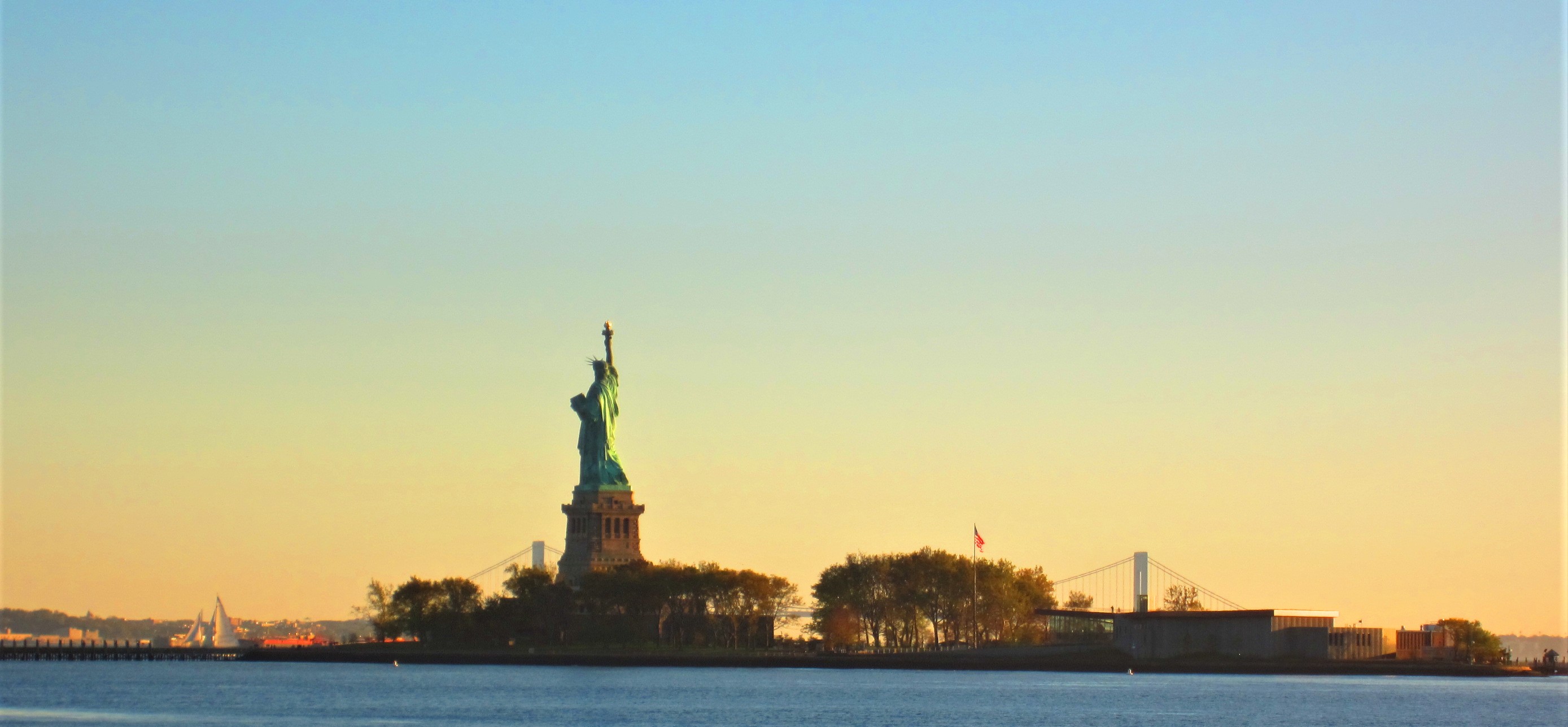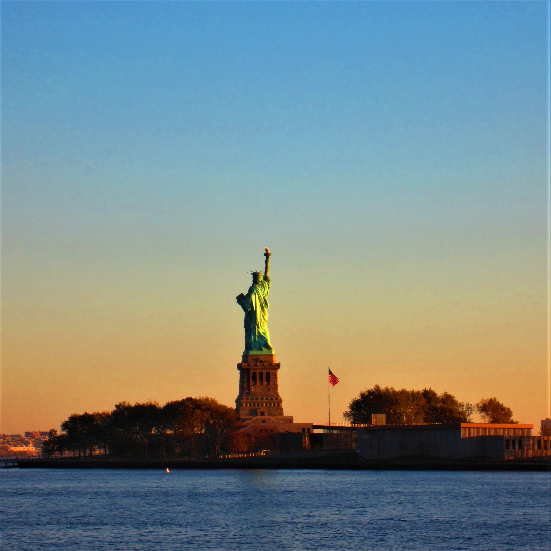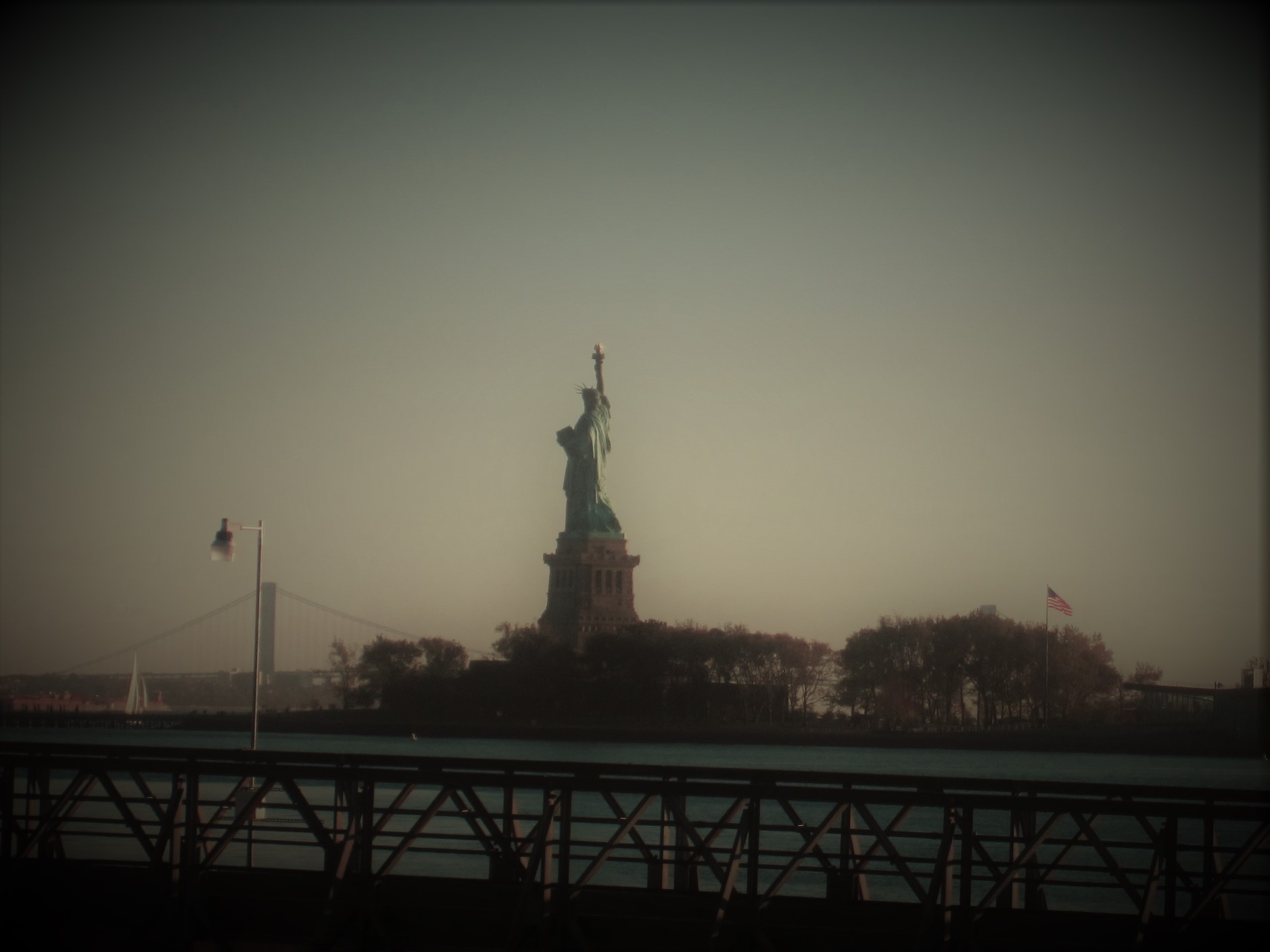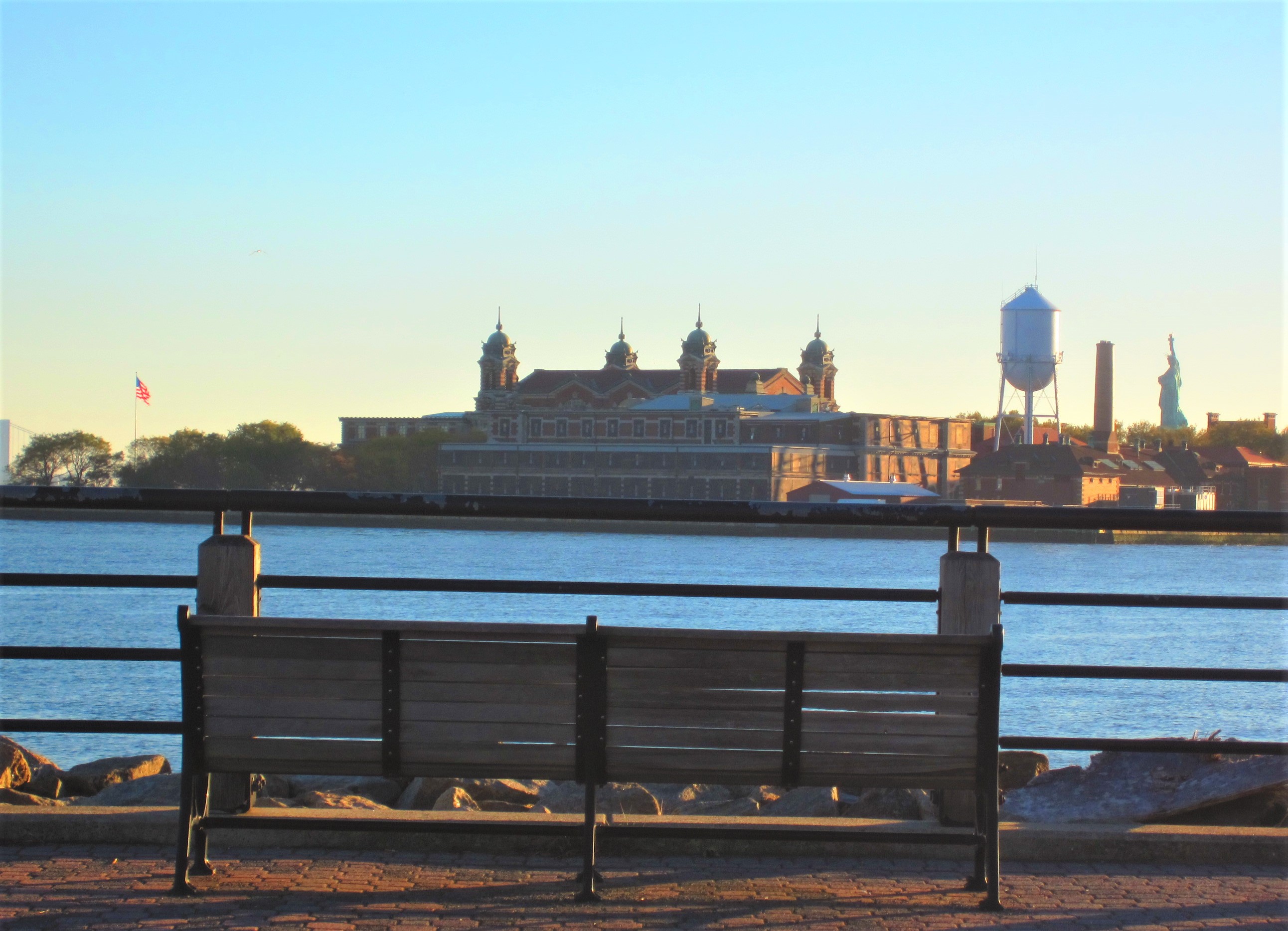 But I couldn’t stop turning again and again, towards the image of Lady Liberty’s back. She’s not facing Jersey, not facing New York, she’s looking outward. Used to be, she looked outward to welcome ships arriving from across the Atlantic, lifting her lamp beside the golden door, lighting the way for those yearning to breathe free. But the huddled masses haven’t passed beneath the towers of Ellis Island for decades.