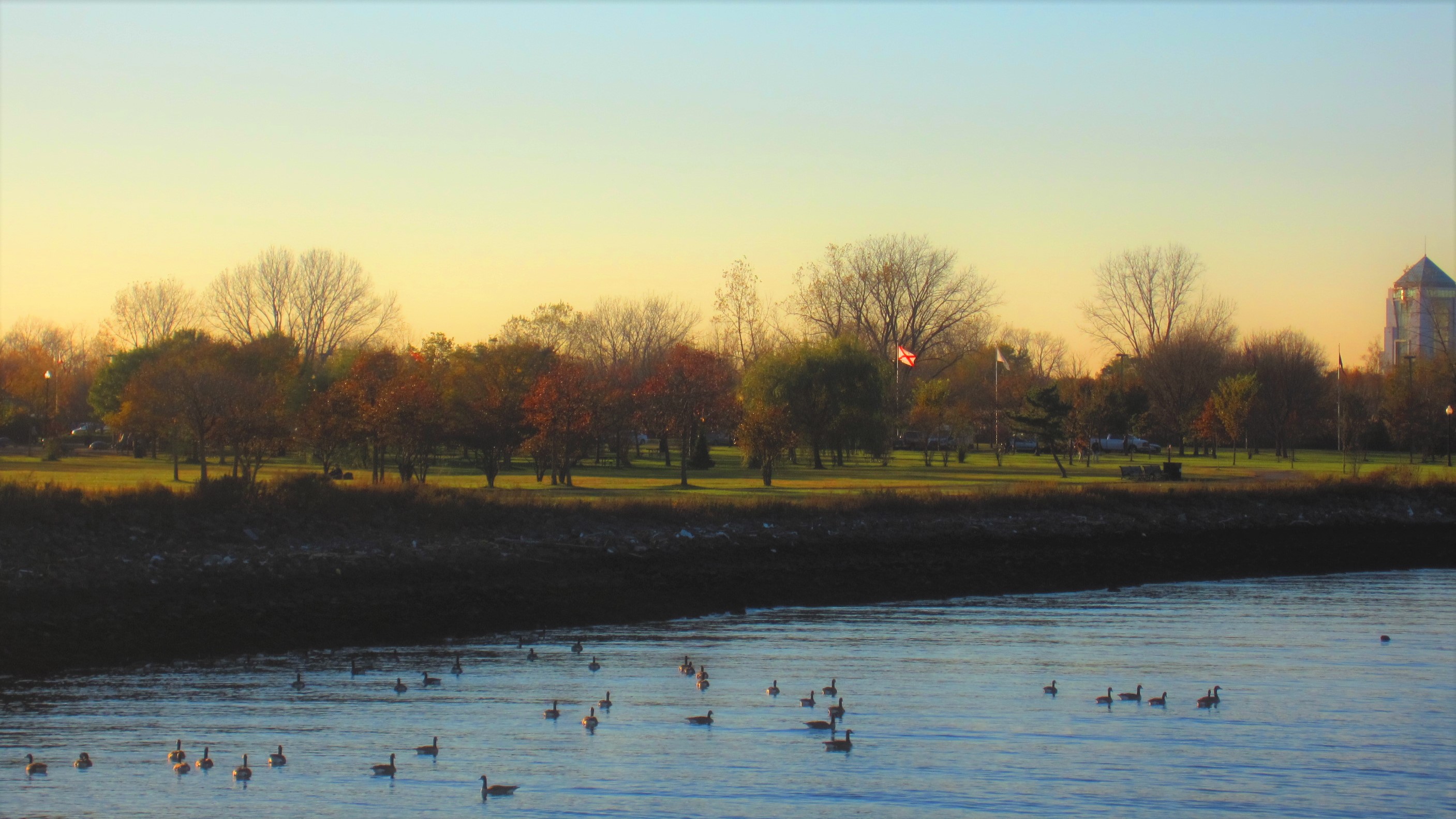 There were cormorants, gulls, terns, and plenty of Canada geese, lots of families out with children, and some cyclists and joggers, too. Those onion towers of Ellis Island’s red brick immigrant processing center were beautiful in the late afternoon light.