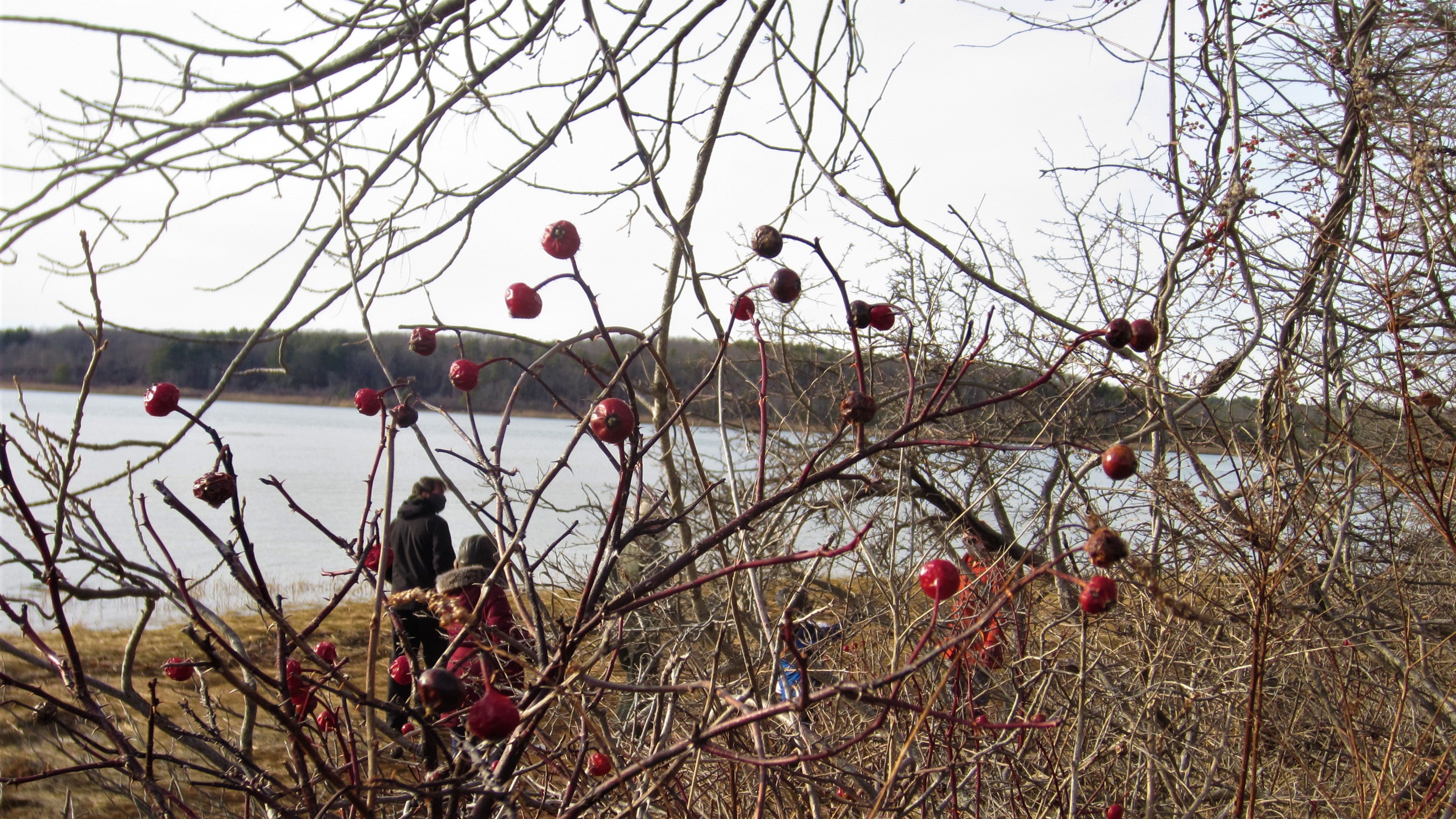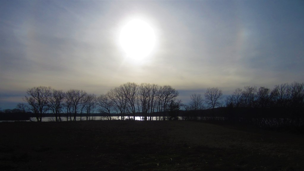 Occupying high bluffs overlooking the Presumpscot Estuary, the views from the West Meadow Trail were stark in their winter beauty under the low near-solstice northern sun. We saw some ducks and gulls and a few chipmunks and squirrels, but while we didn’t see much of the sanctuary’s abundant wildlife, bedded down or gone for the winter, nor wildflowers in the open fields, we did get to learn about a famous snowy owl.