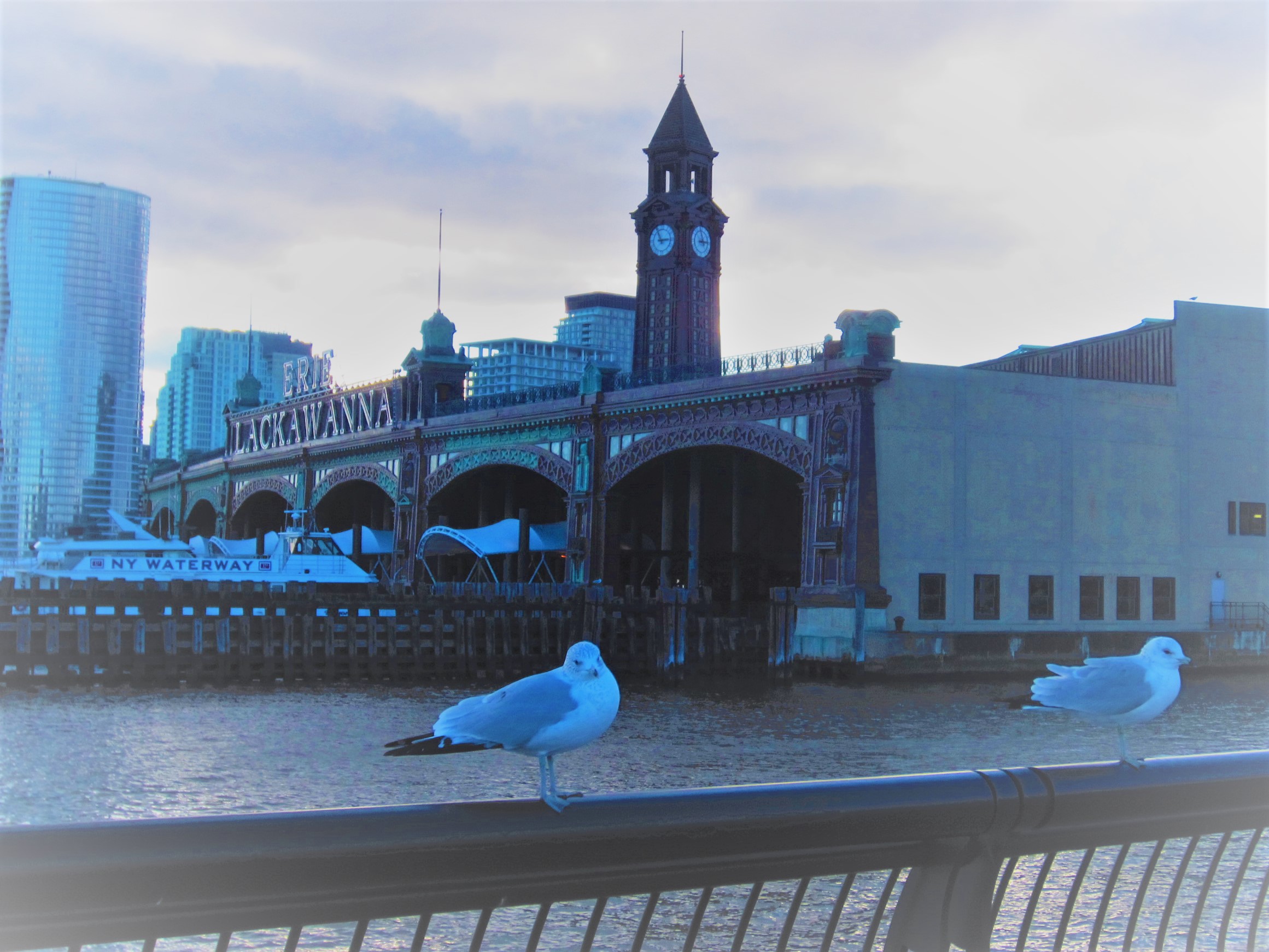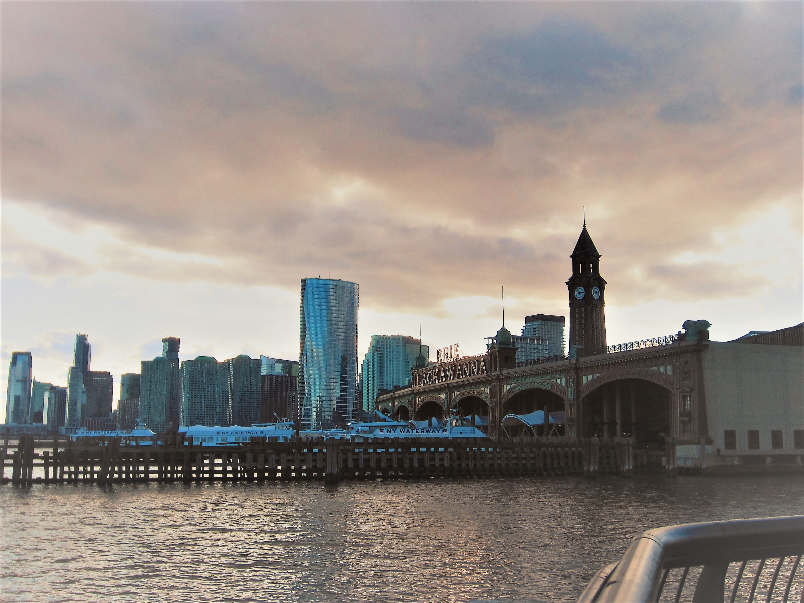 We started in Hoboken’s 9/11 memorial park, which is also near the old Hoboken Terminal of the Erie Lackawanna Railway, now a terminal of the PATH and several ferry lines.