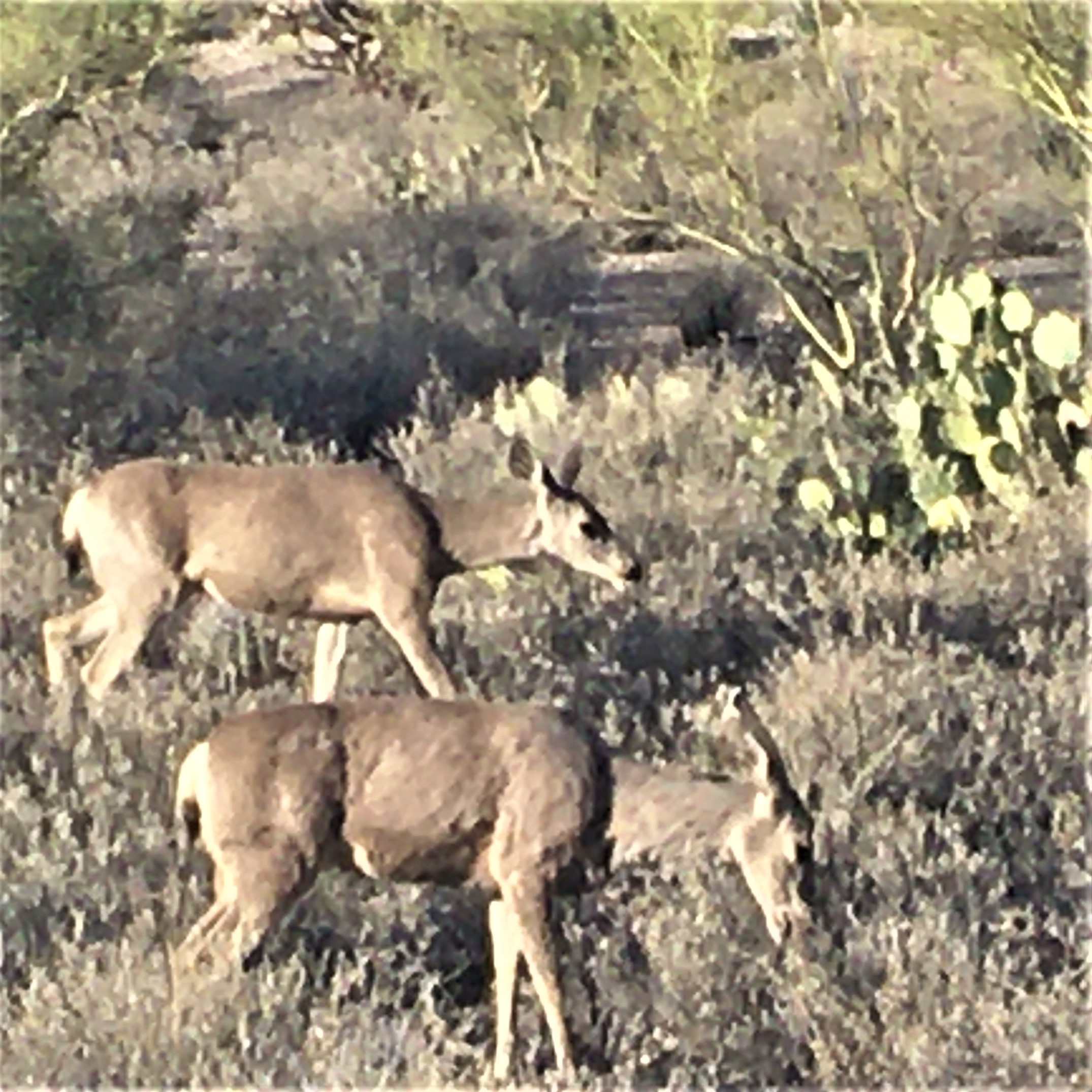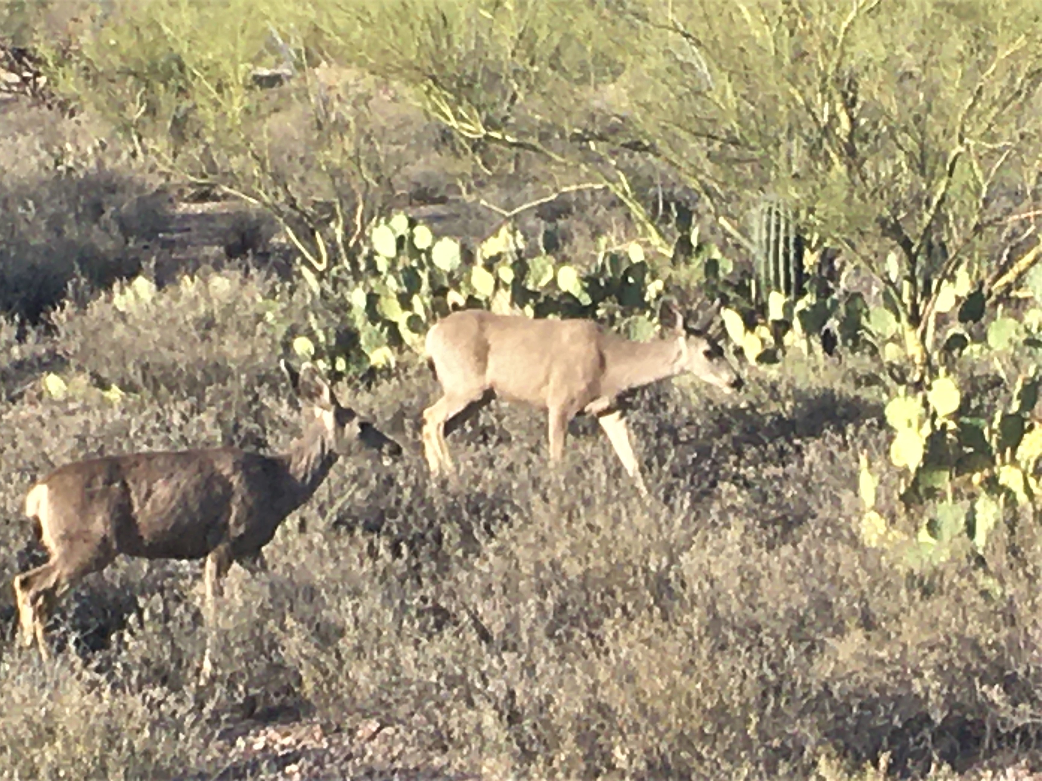 Mule deer are easier to notice, and come past the kitchen windows most days towards evening.