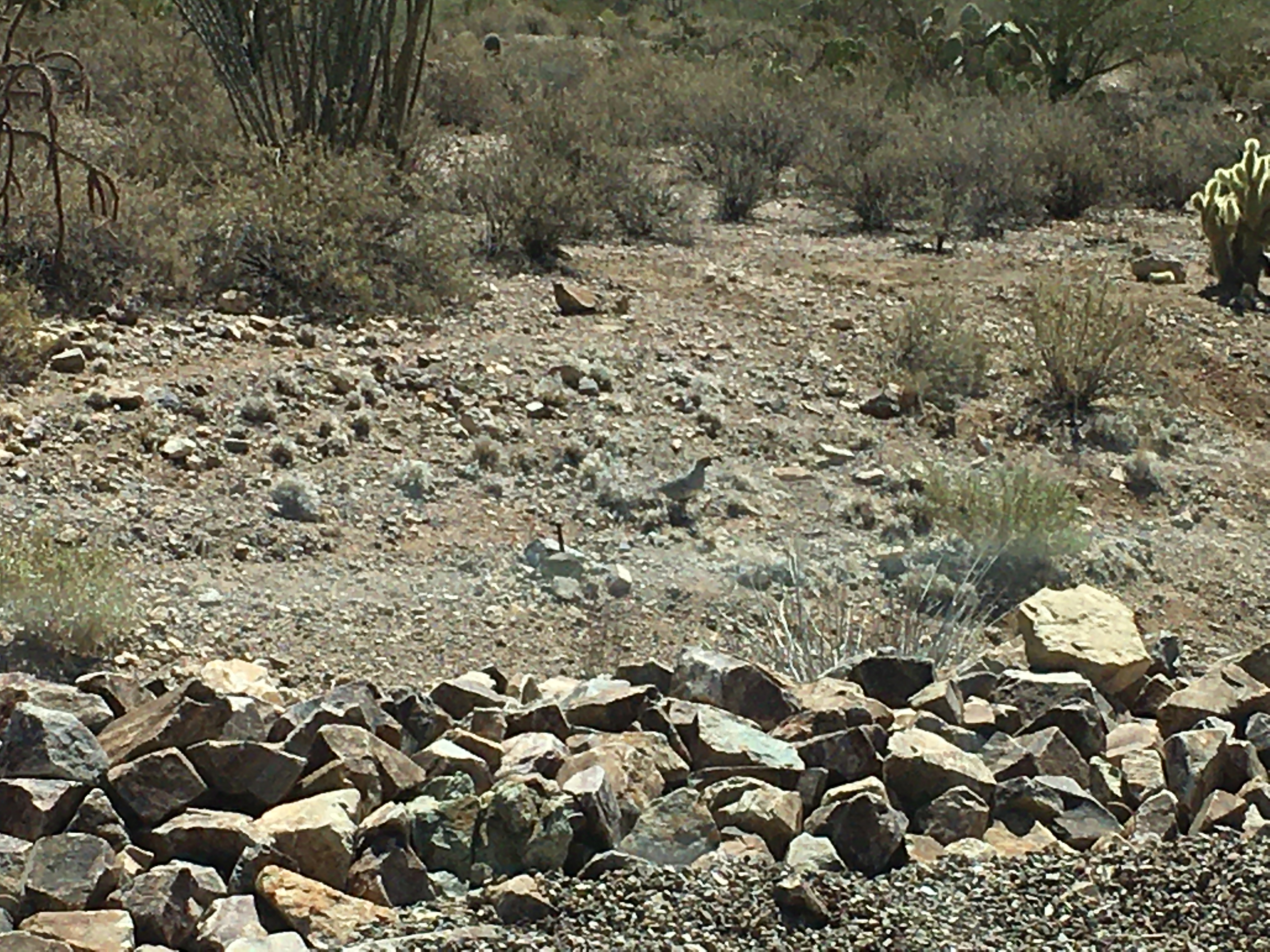 And it’s not just flowers…. We’ve seen plenty of critters, too: earless lizards, quail and their babies, bunnies, mule deer, mourning doves, cactus wren, hummingbirds, and many more birds I couldn’t name, even a roadrunner and a red-tailed hawk along the roadsides as we’ve driven around town.