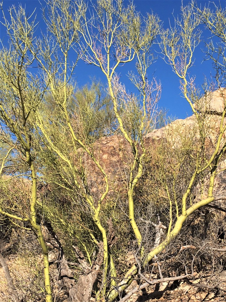 Palo verde have few very slender leaves, but can photosynthesize with their green bark.