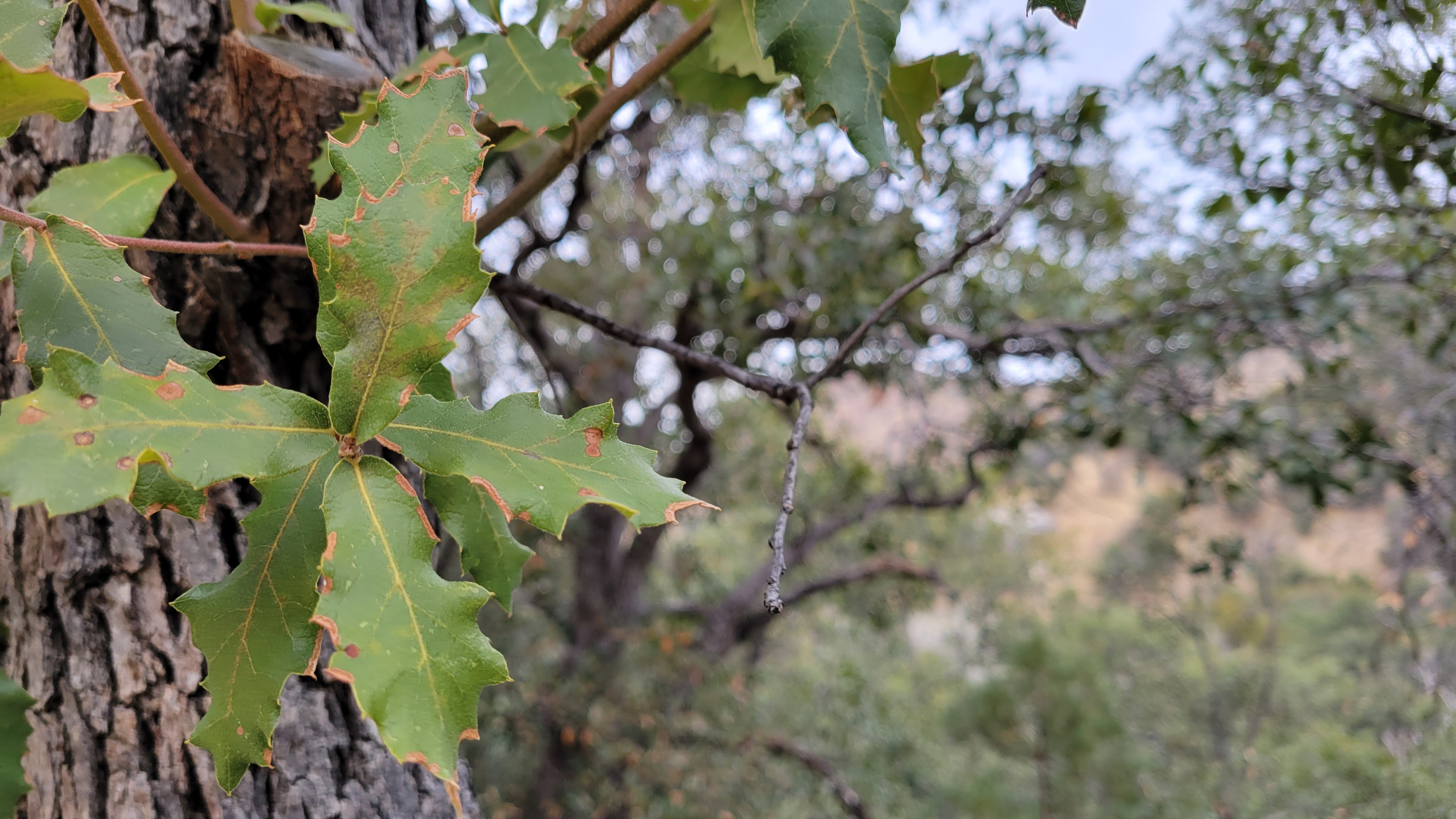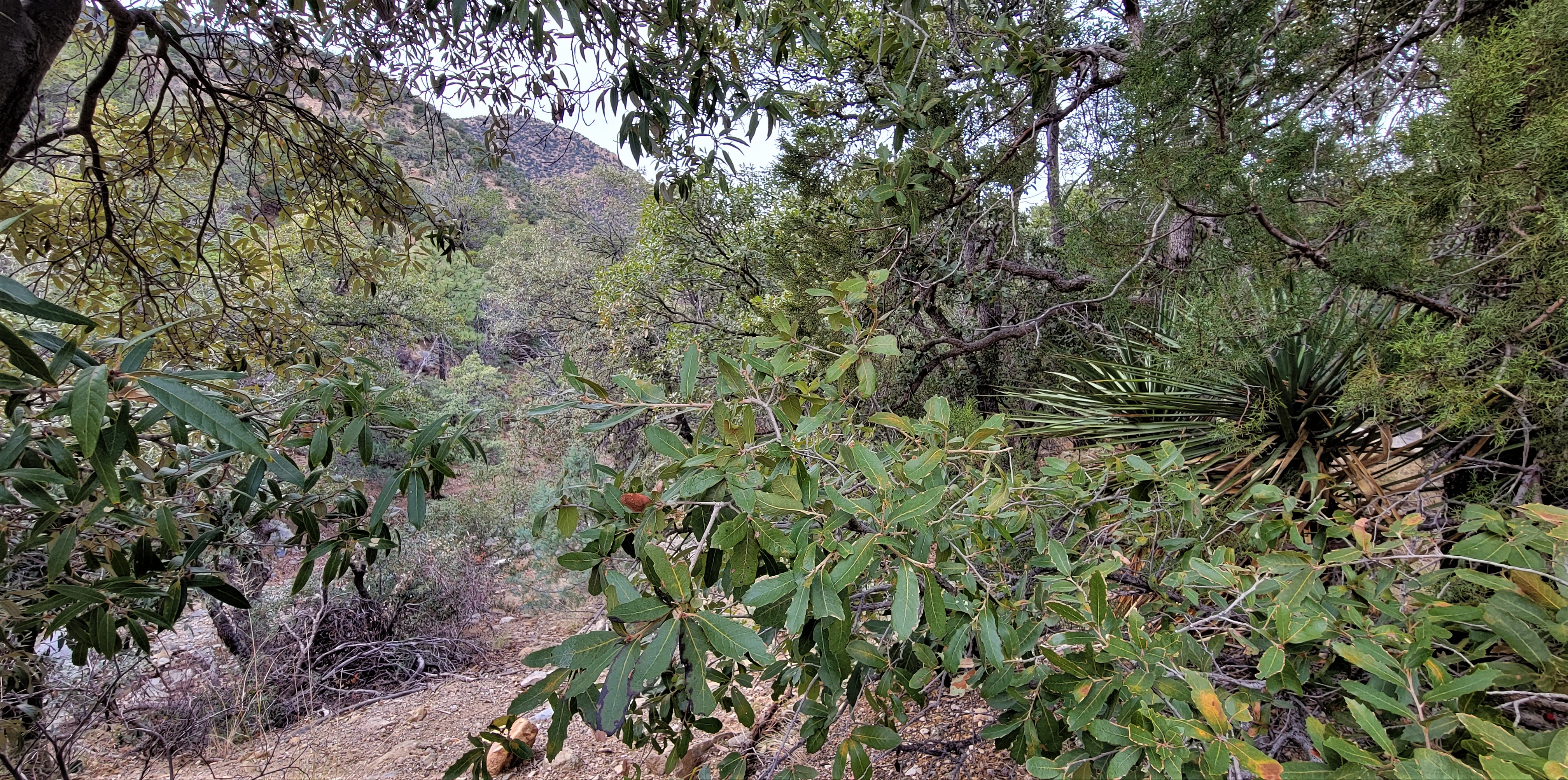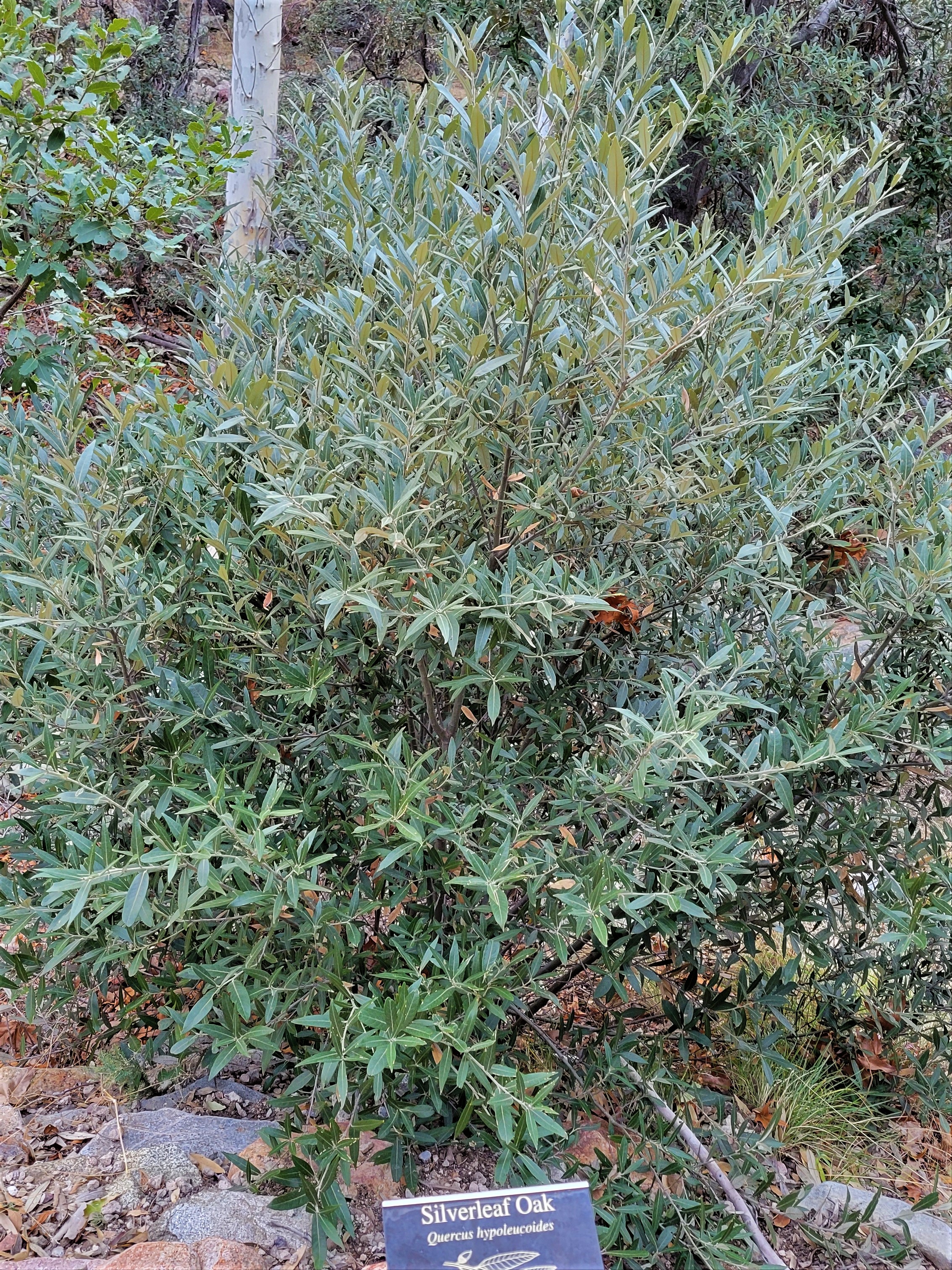 I was particularly fascinated by these trees with their slender silvery leaves so much like an olive tree, but it turns out they’re an oak variety, the appropriately termed silverleaf oak, a broadleaf evergreen tree — related to the deciduous red oaks, but never shedding its silvery leaves.