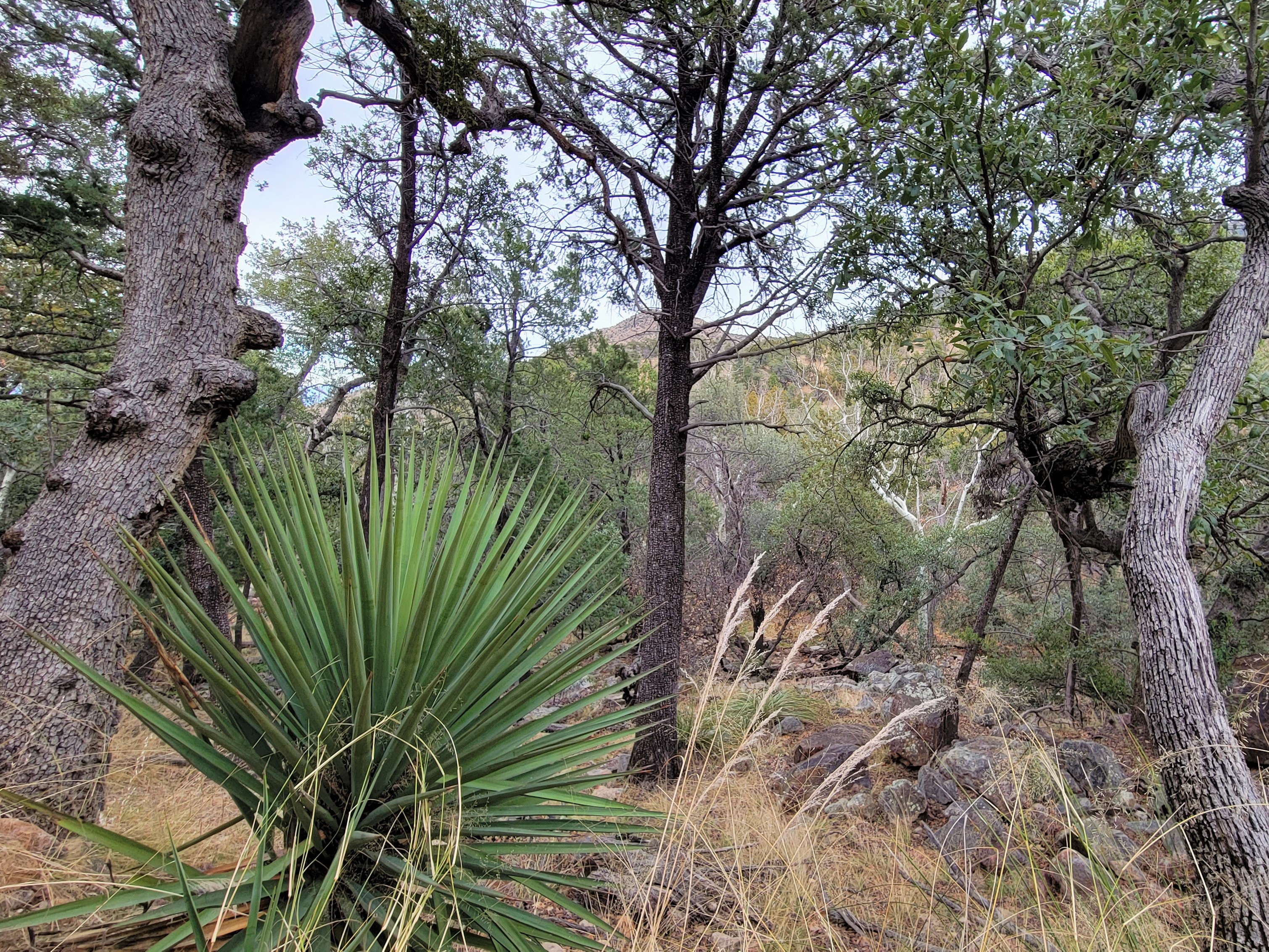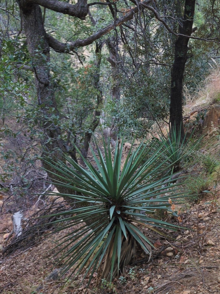One, I associate with the desert. The other, I associate with temperate climes. But high in the Madera Canyon, you’ll find them side-by-side on the rocky hillside.