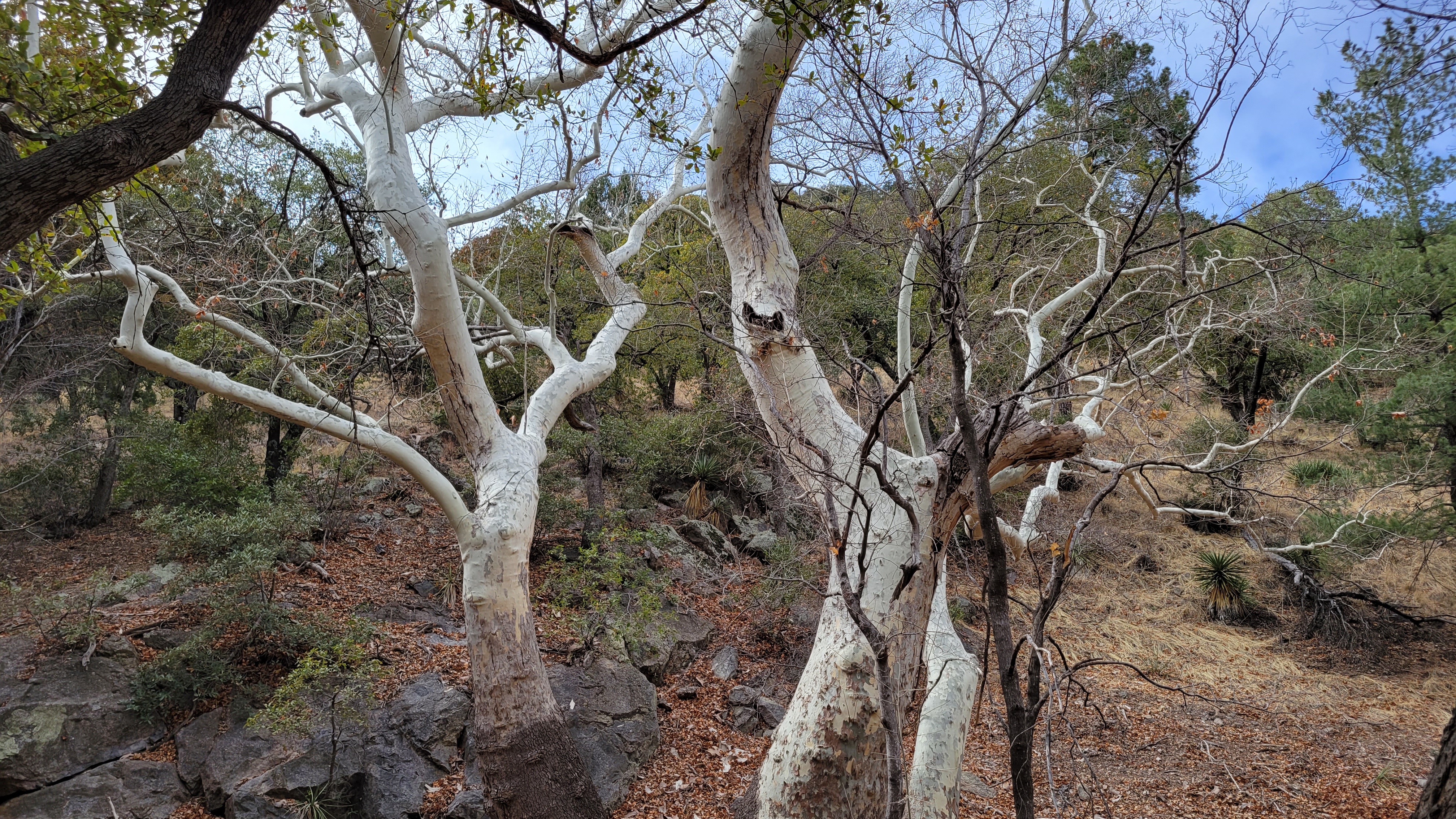 One tree I do recognize is the sycamore. I grew up with an enormous one outside my bedroom, and I’ve loved them ever since, perhaps in part because they’re so distinctive with their smooth white bark.