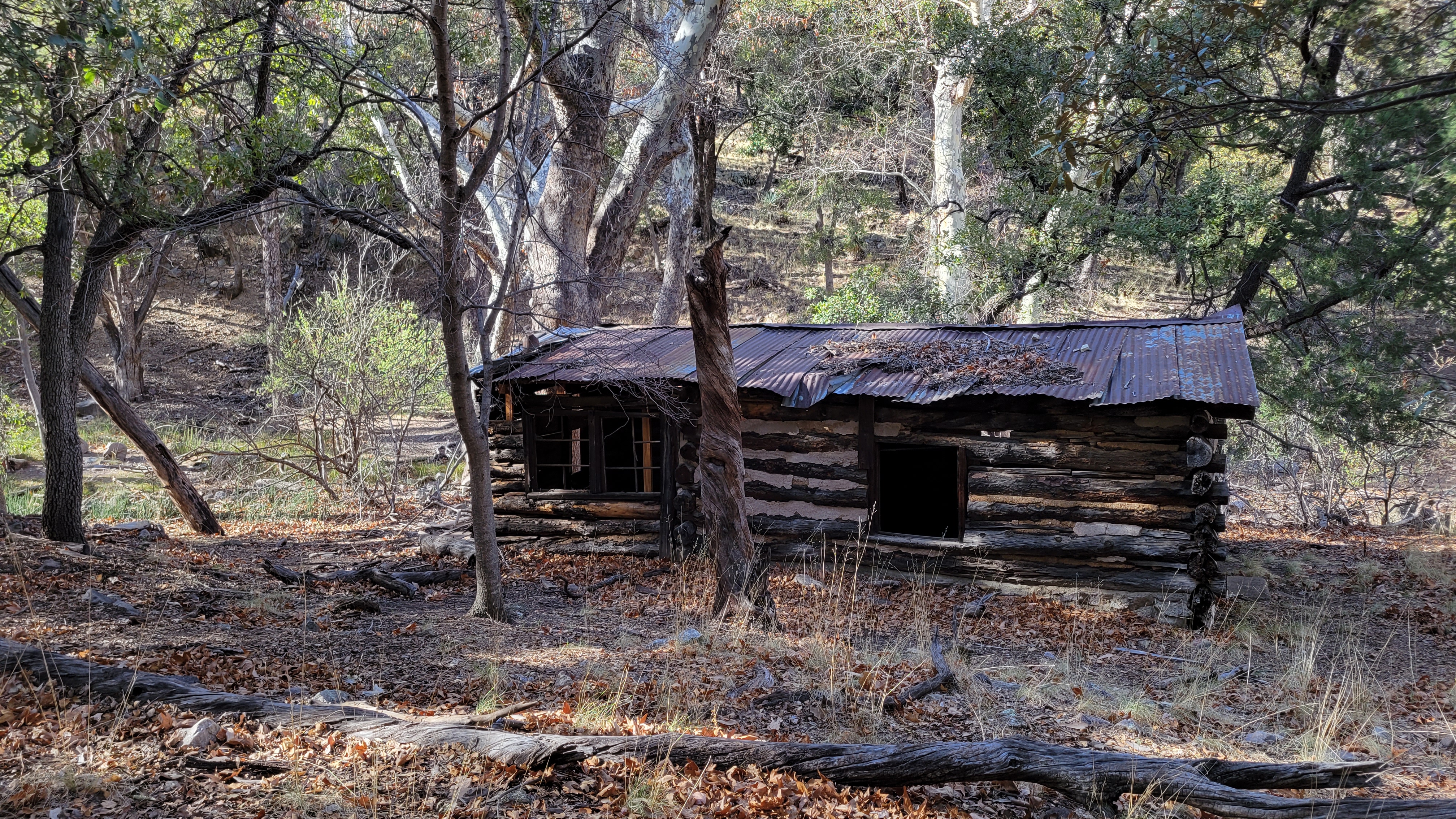 A couple early Twentieth Century cabins offered a little variety to the landscape, left from a small community of about a hundred people who lived there at the time.