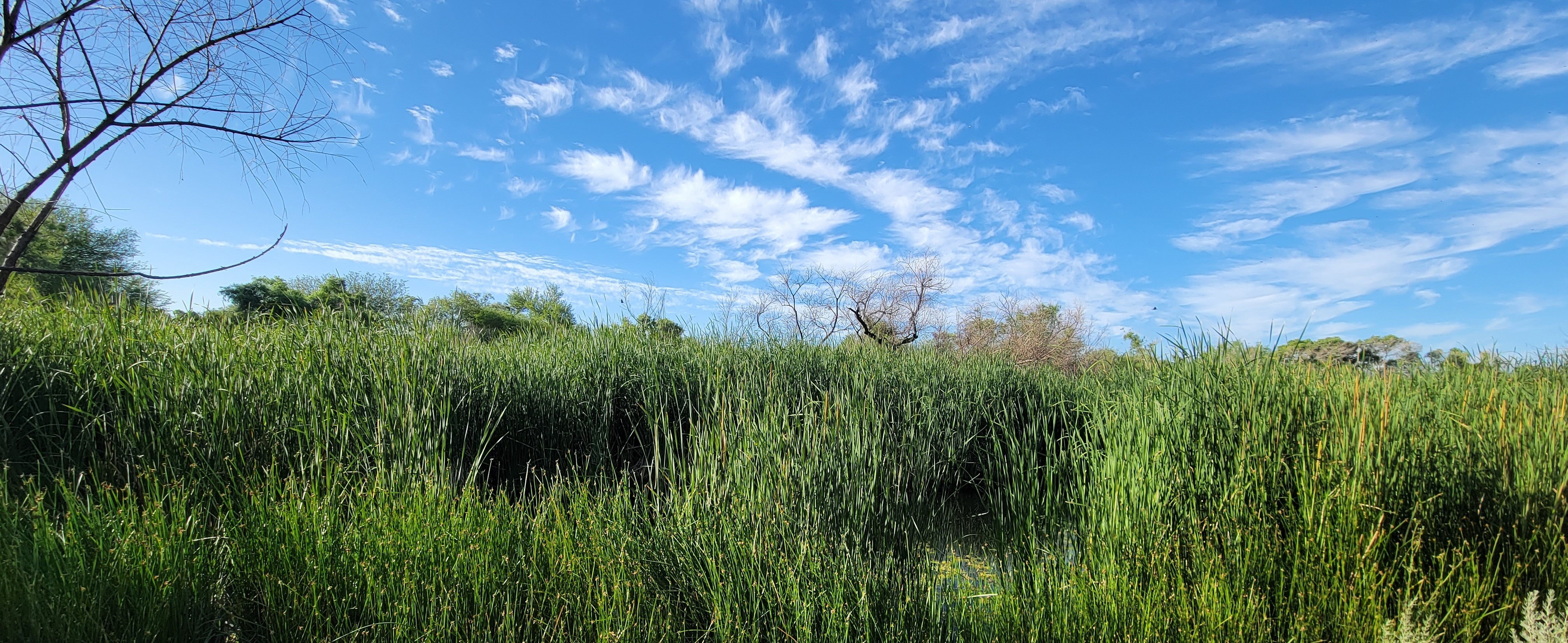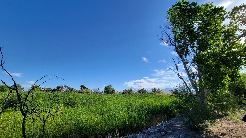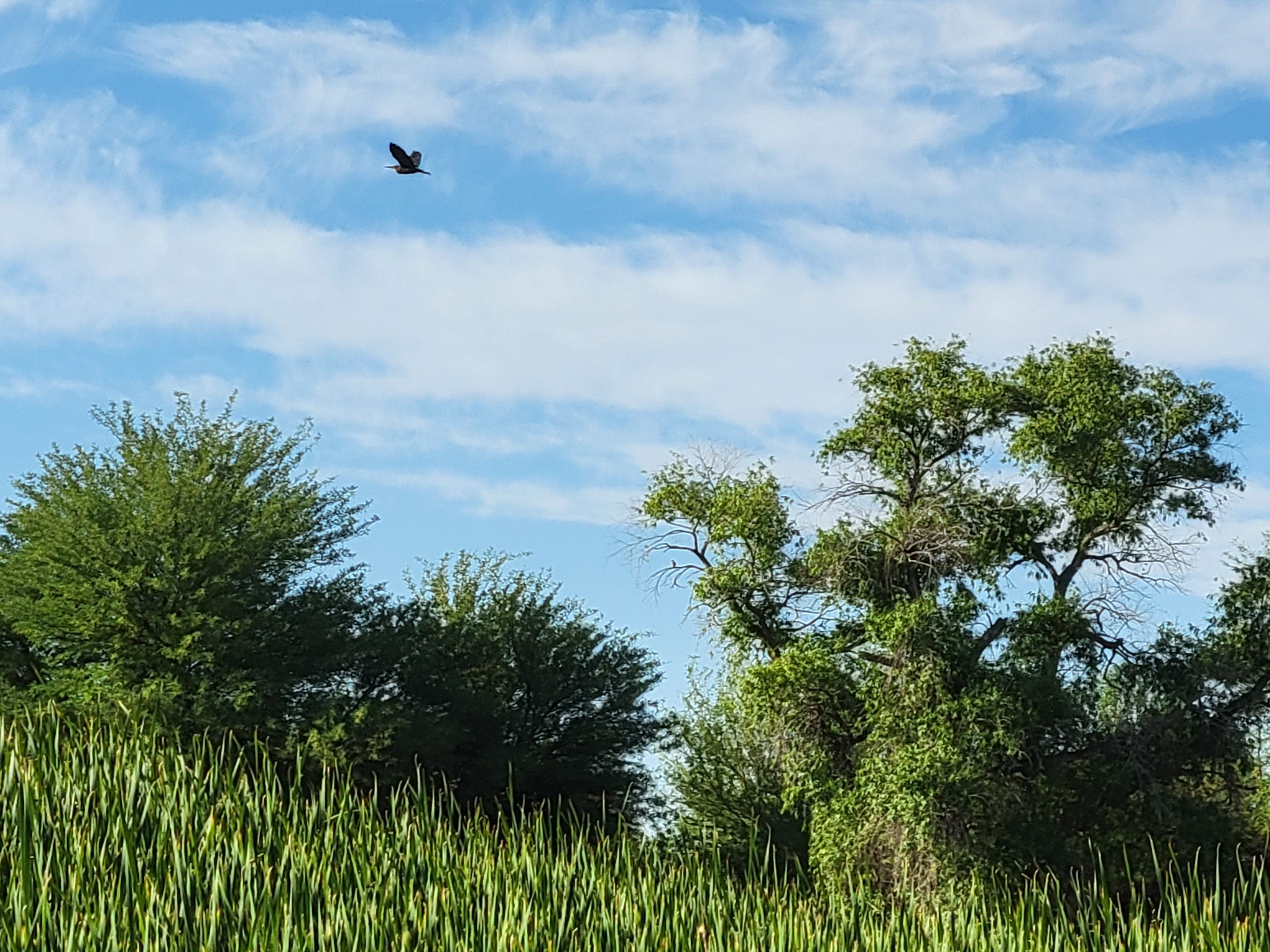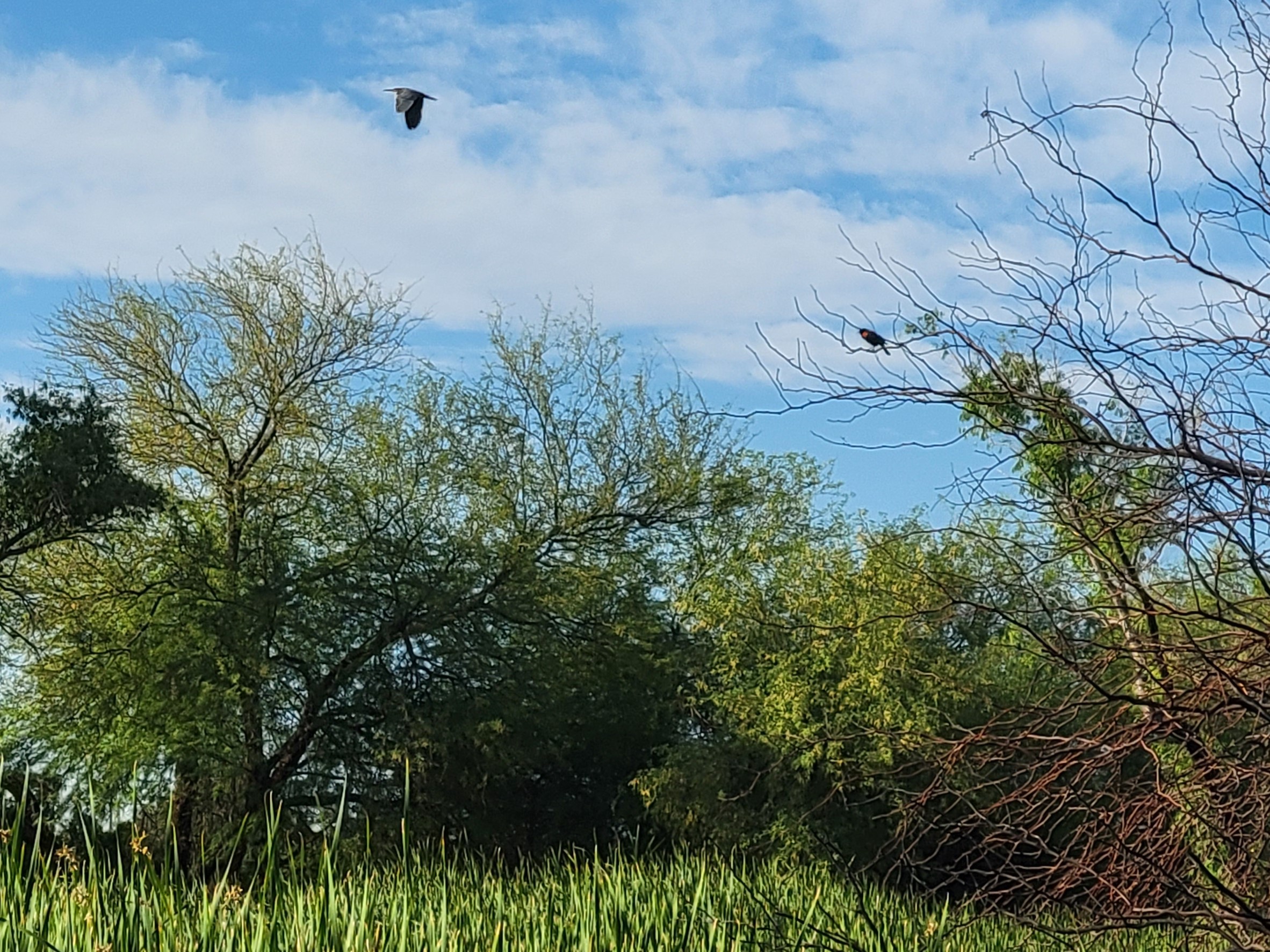 Then there’s a bunch more birds I wasn’t able to capture with my camera: (top to bottom from the column on the left) the White-crowned Sparrow, Anna’s Hummingbirds, a very mouthy Bell’s Vireo, Cliff Swallows, a Gila Woodpecker, a Green Heron, House Finch, at least one Ladder-backed Woodpecker, a cormorant overhead, lots of Northern Rough-winged Swallows, a pair of Red-Tailed Hawks atop an electric tower in the distance, Song Sparrows and a Vermillion Flycatcher either feeding her babies or trying to get a moment’s peace.