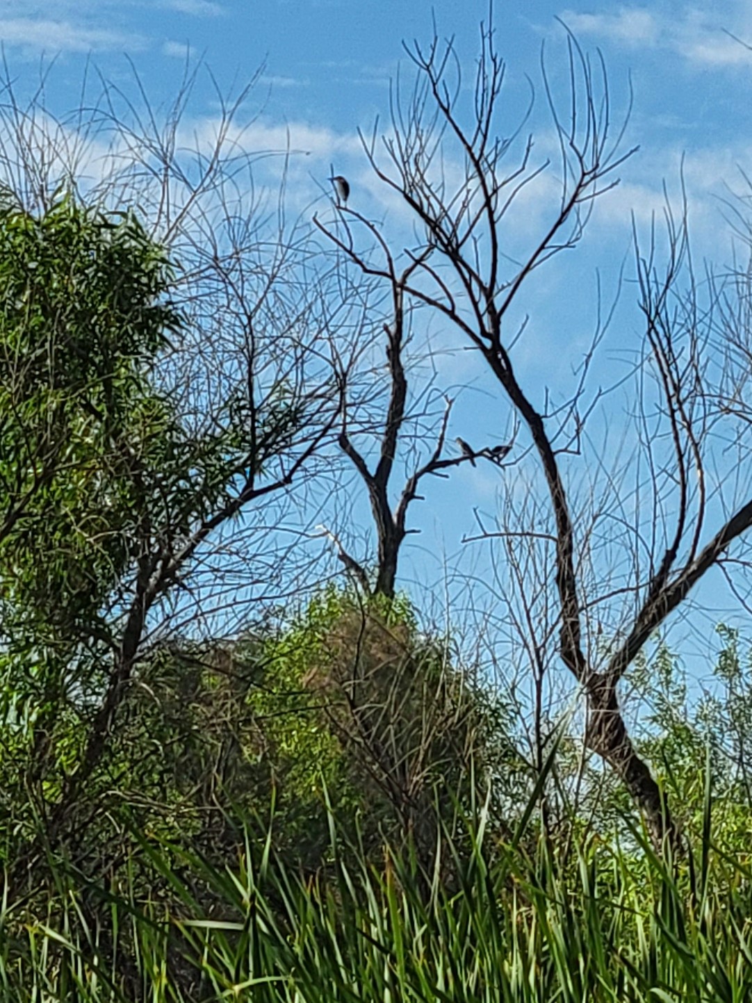 I’m not sure I actually saw one, but I heard them, and their nests were everywhere. They enter the nests from underneath what looks like just a messy pile of sticks in the crook of the branches.