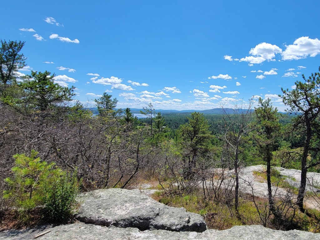 It’s not especially tall, but Jockey Cap has a great view of the White Mountains and the lakes, and a fun little monument that explains everything you can see.