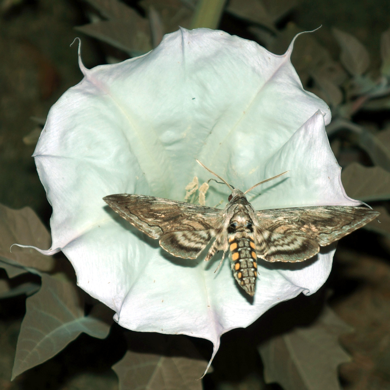 And down under yet another bridge, I found myself enthralled by watching these sacred datura flowers being sipped at and pollinated by enormous, very busy sphinx moths, aka hawk moths. At first I thought they were hummingbirds, apparently a common error, but as it was nearly dark, which prompted me to inquire further once we were home again.