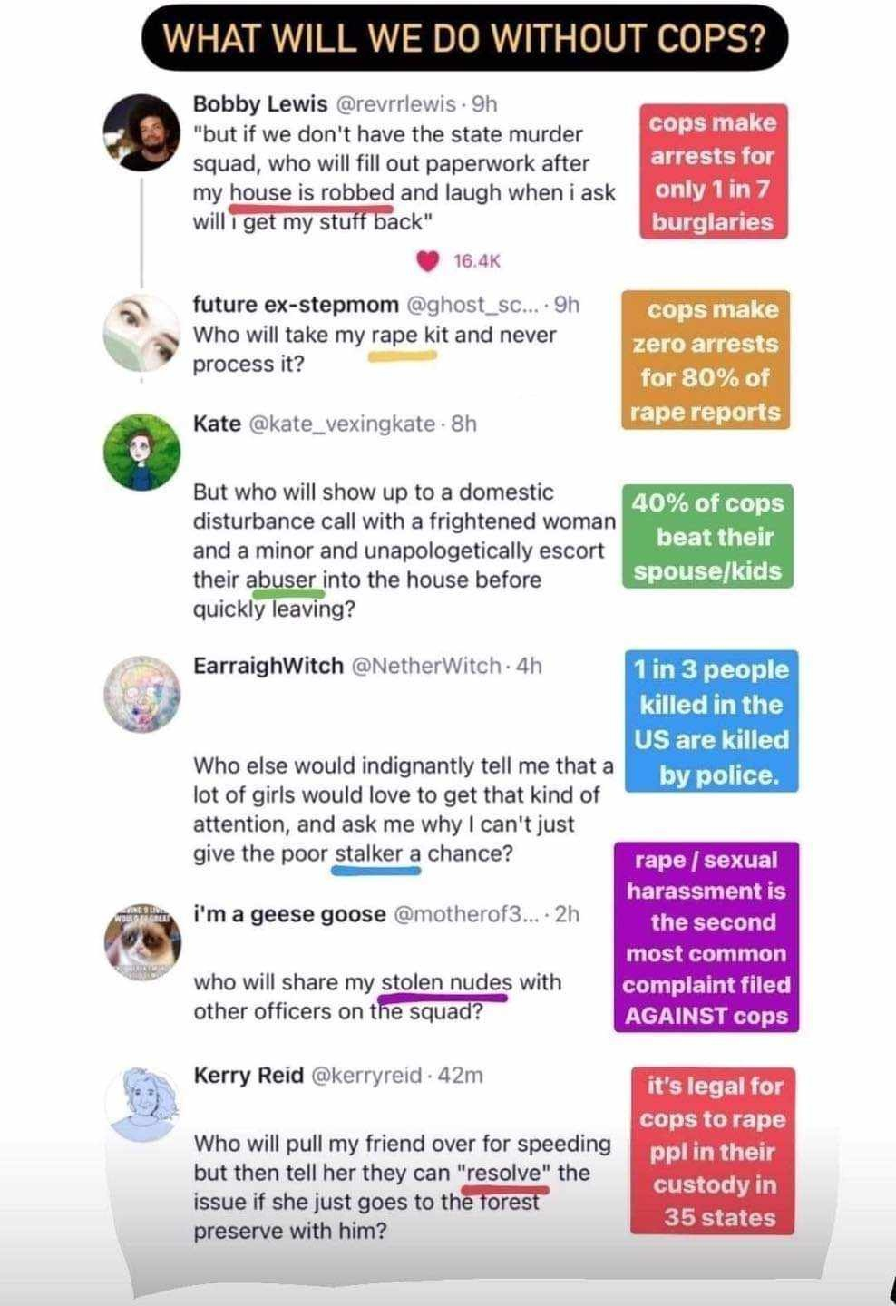 There are obviously a lot of people who agree broadly with the notion that the way that policing happens in this country is a problem and that there needs to be some sort of change. But they’re pretty invested in the idea that police are needed to maintain public safety. People ask the question, without police, what do you do when someone gets murdered? What do you do when someone’s house gets robbed?